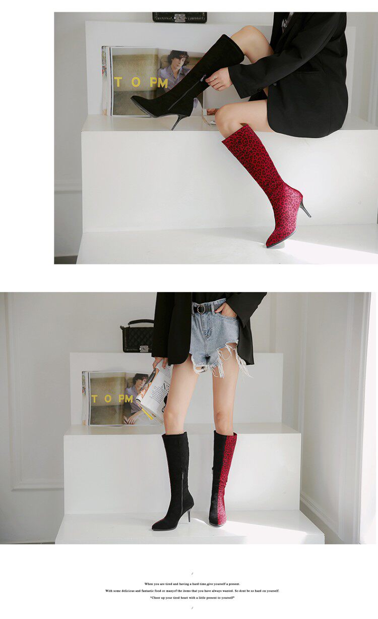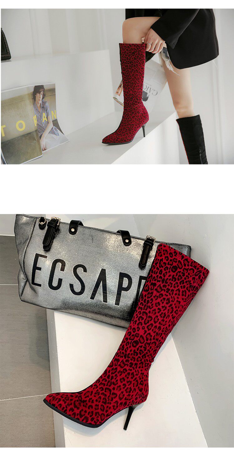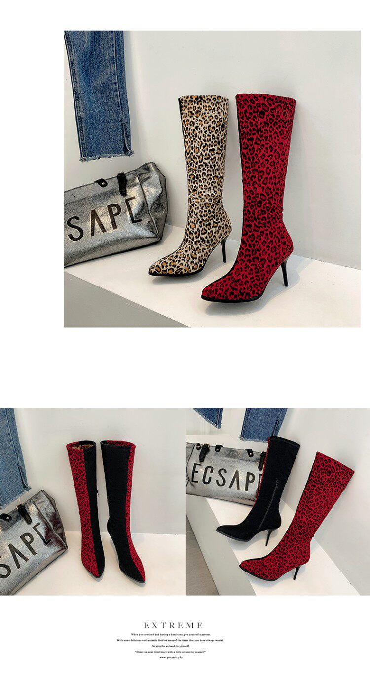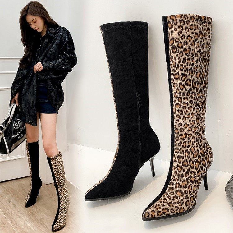 Сексуальные сапоги на высоком каблуке с леопардовым принтом и острым носком соответствующего цвета, утягивающие высокие сапоги на высоком каблуке с леопардовым принтом, большие размеры 44, 45, 46, 47, 48