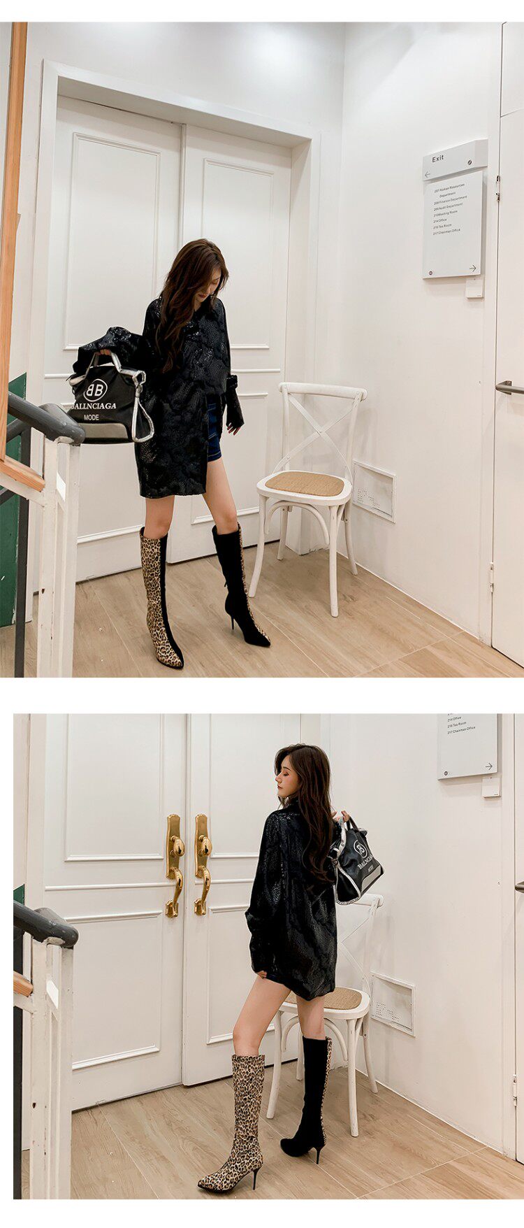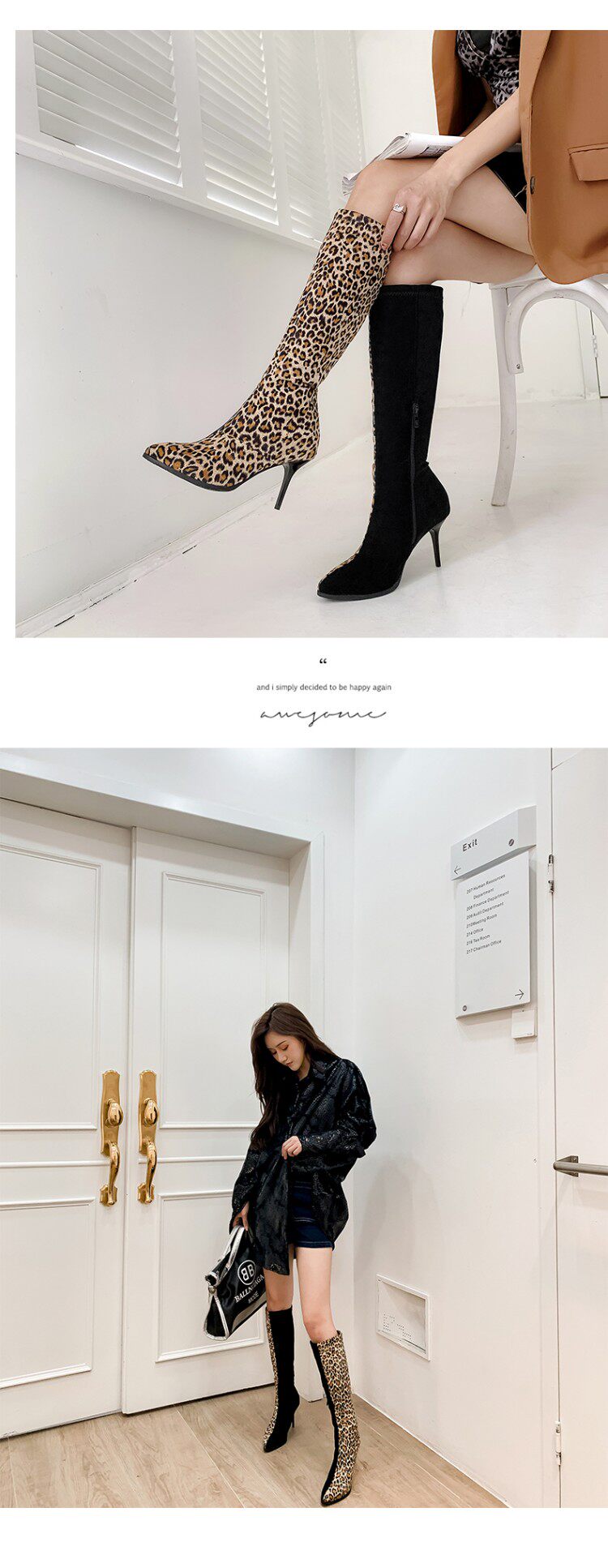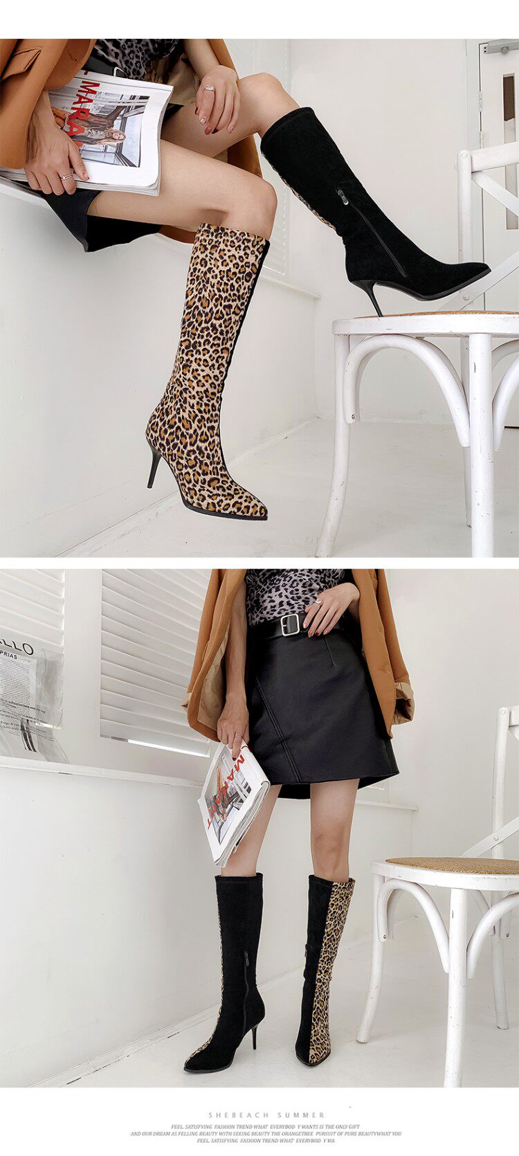 Сексуальные сапоги на высоком каблуке с леопардовым принтом и острым носком соответствующего цвета, утягивающие высокие сапоги на высоком каблуке с леопардовым принтом, большие размеры 44, 45, 46, 47, 48