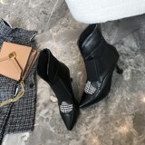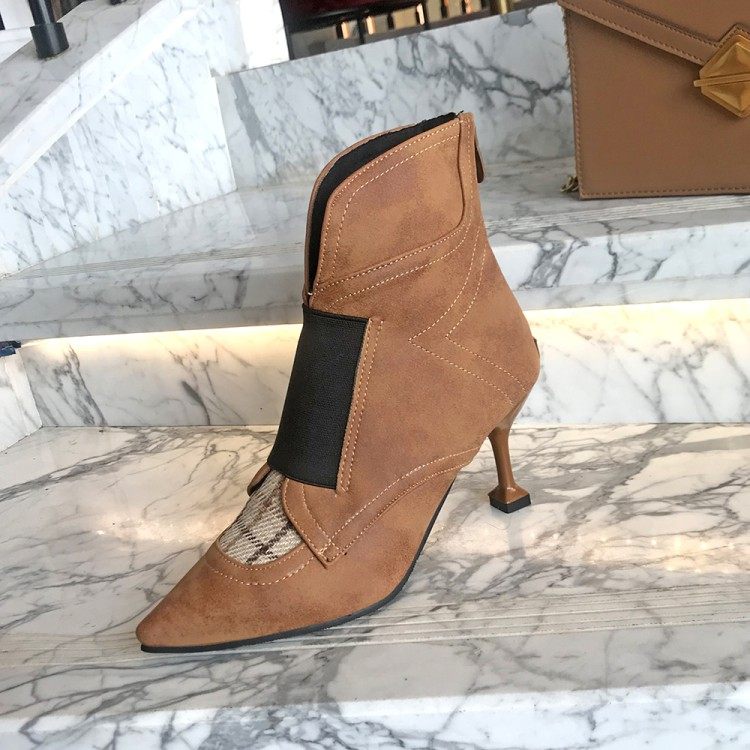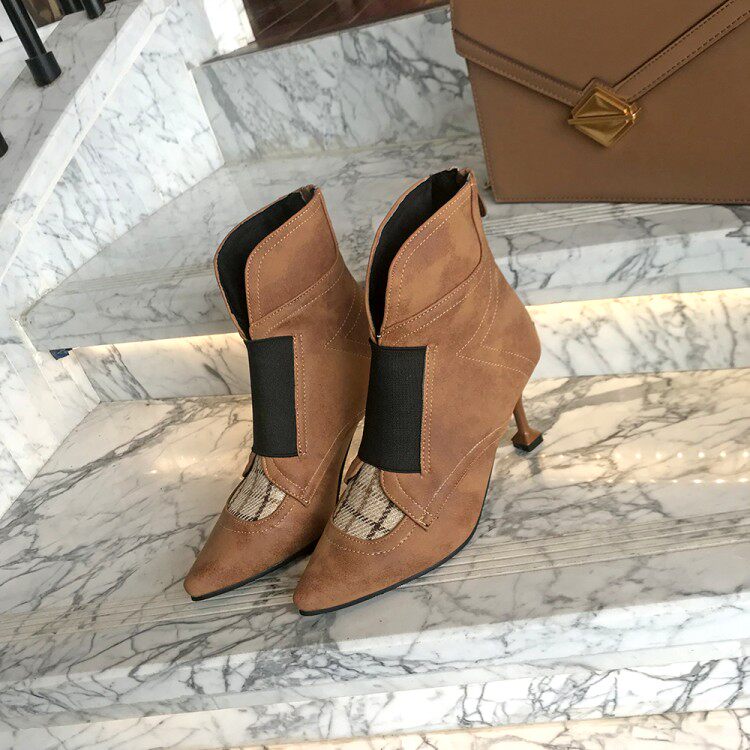 Европейские и американские новые клетчатые сапоги на высоком каблуке с острым носком, большие размеры 44, 45, 46, 47, 48, короткие сапоги, модная обувь