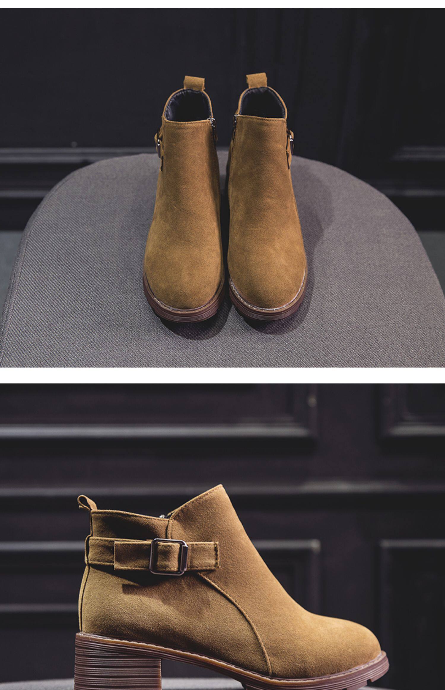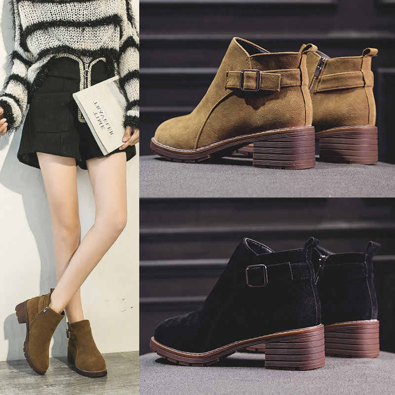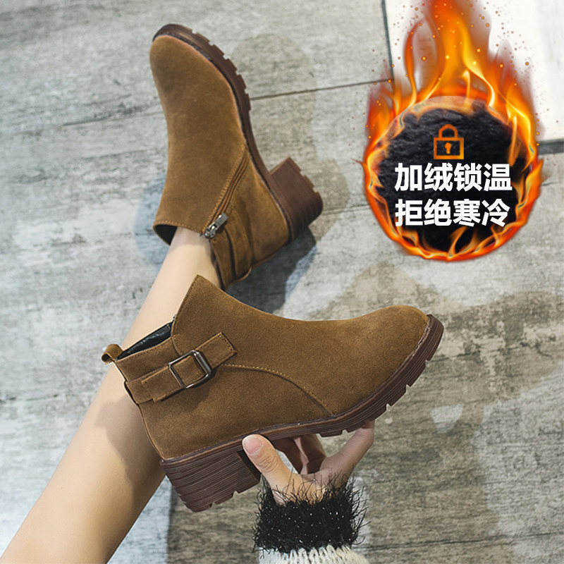 Martens, демисезонные высокие короткие сапоги на платформе, ремень, флисовая пряжка, 2019, в корейском стиле