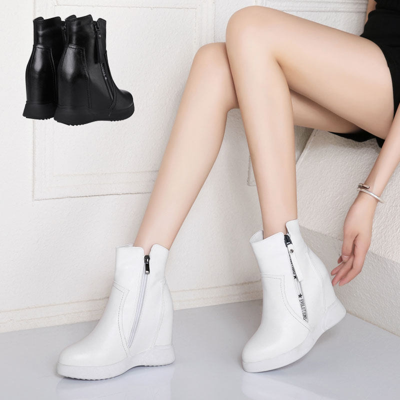 Универсальные демисезонные высокие короткие сапоги, ботинки на платформе, ботильоны для отдыха, из натуральной кожи, 10см, в корейском стиле