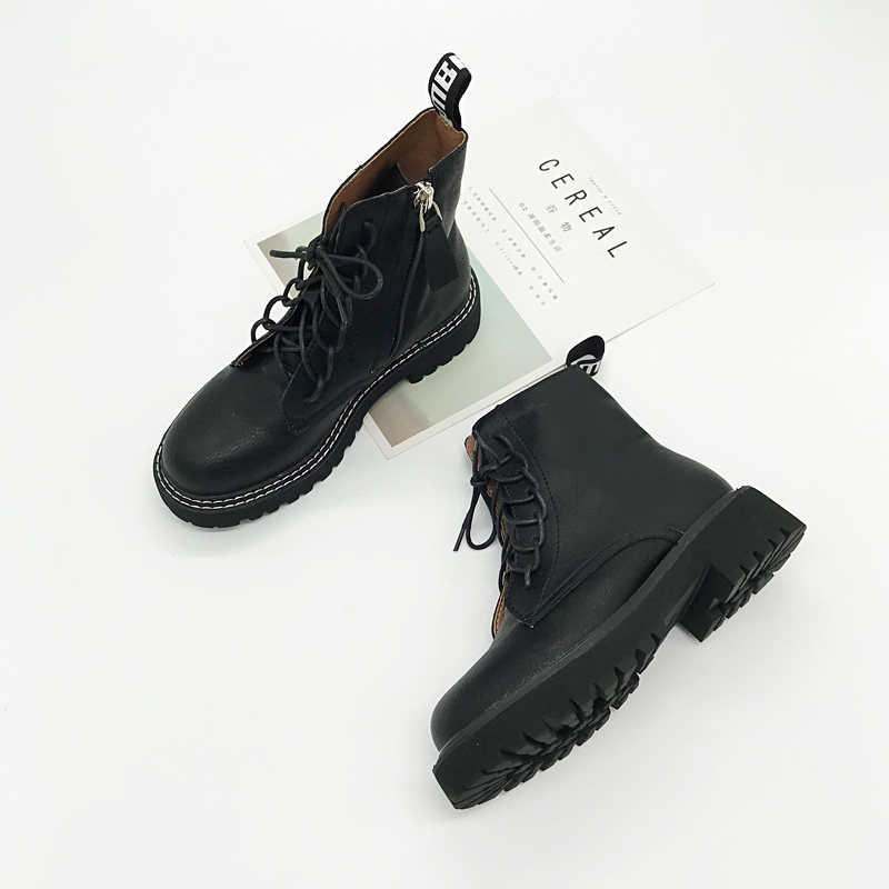 Martens, дышащие черные короткие сапоги с молнией на платформе в английском стиле, ботинки, в британском стиле