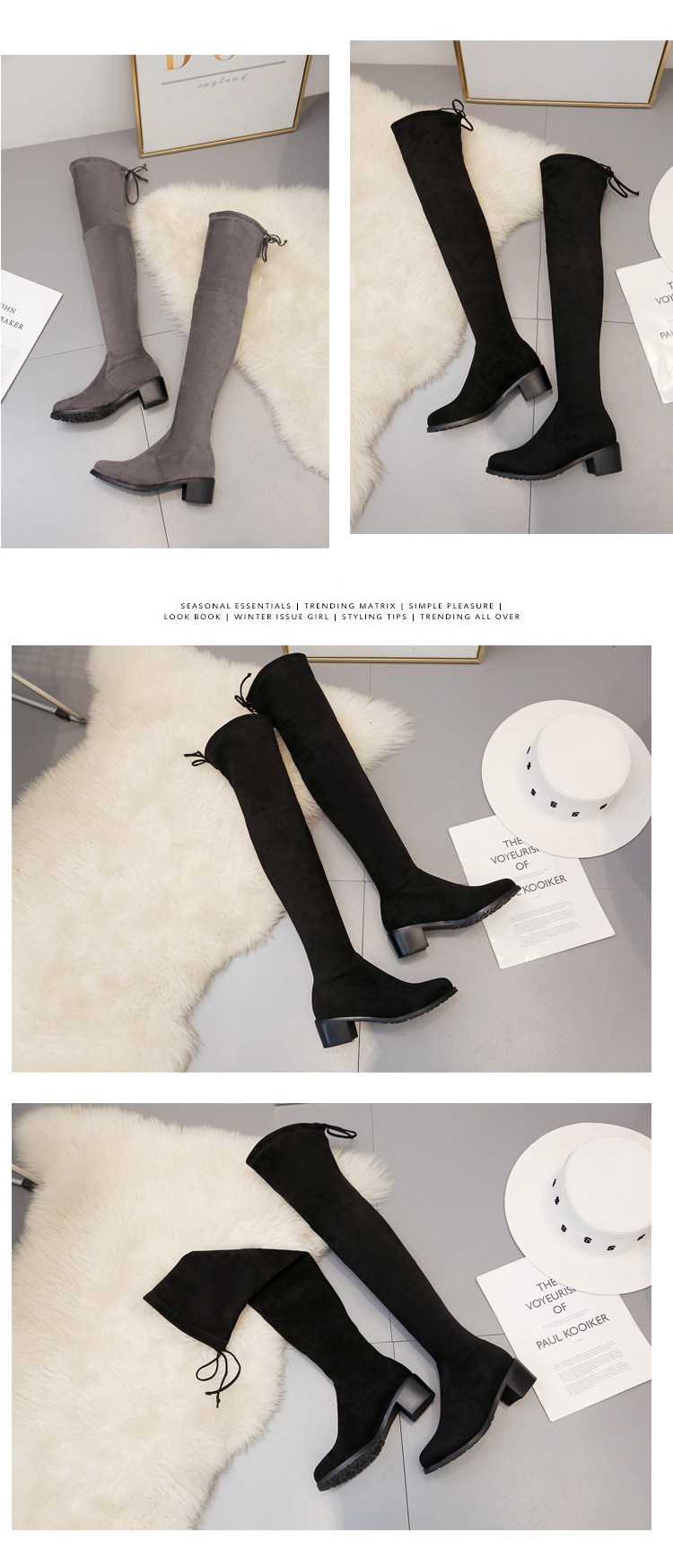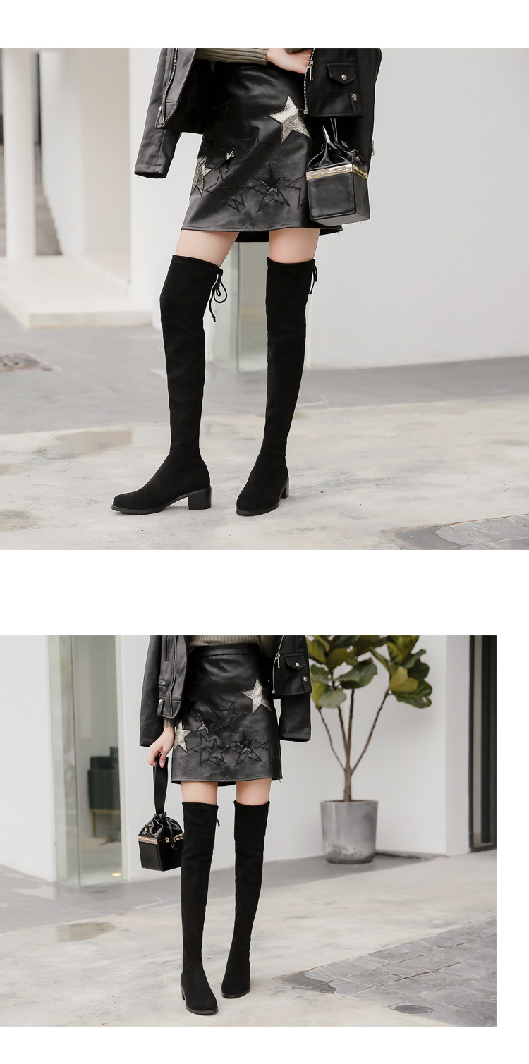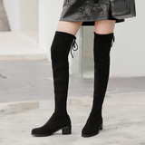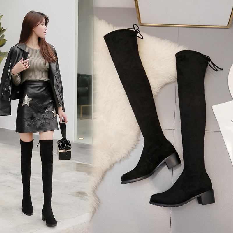 Черные высокие сапоги, флисовые эластичные ботинки, яркий броский стиль, в западном стиле