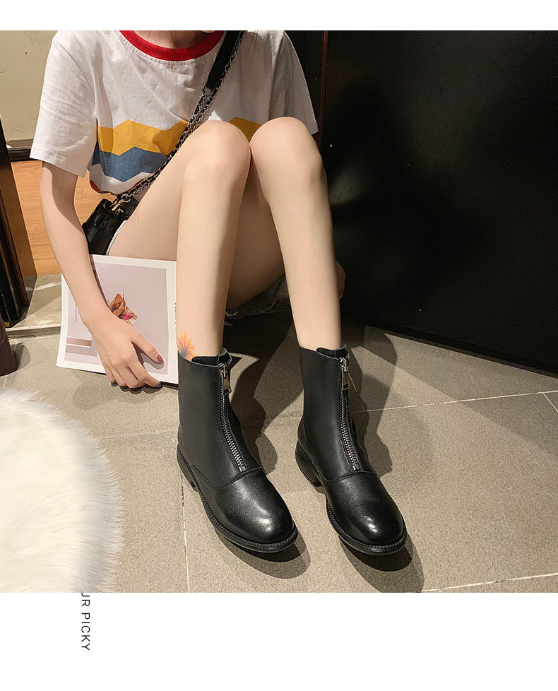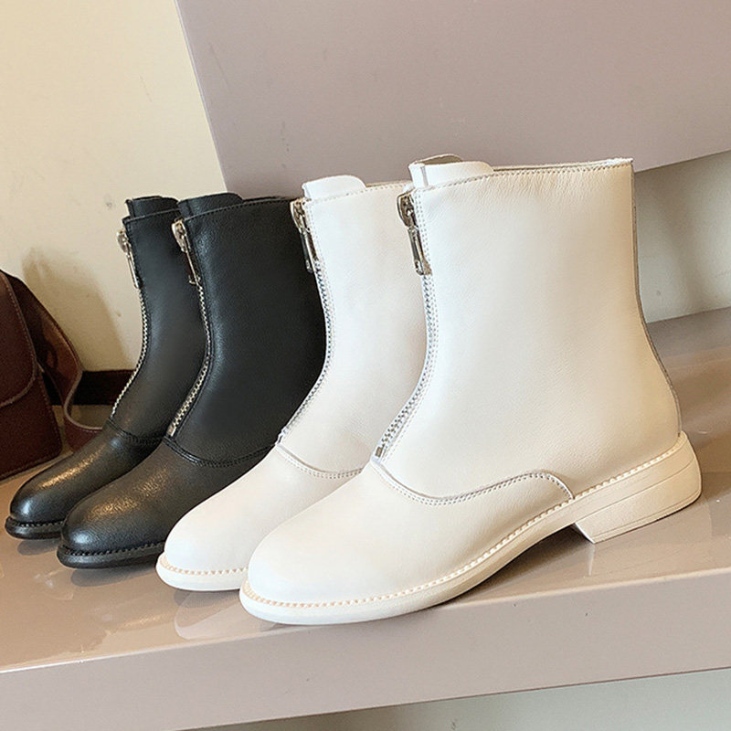 Martens, кожаные короткие сапоги с молнией, универсальные ботинки, 2019, воловья кожа, в корейском стиле