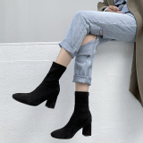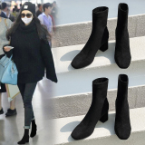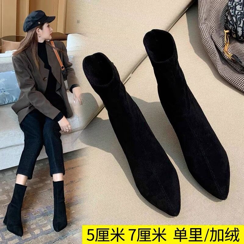 Высокая универсальная демисезонная обувь, эластичные небольшие короткие сапоги, 2024 года
