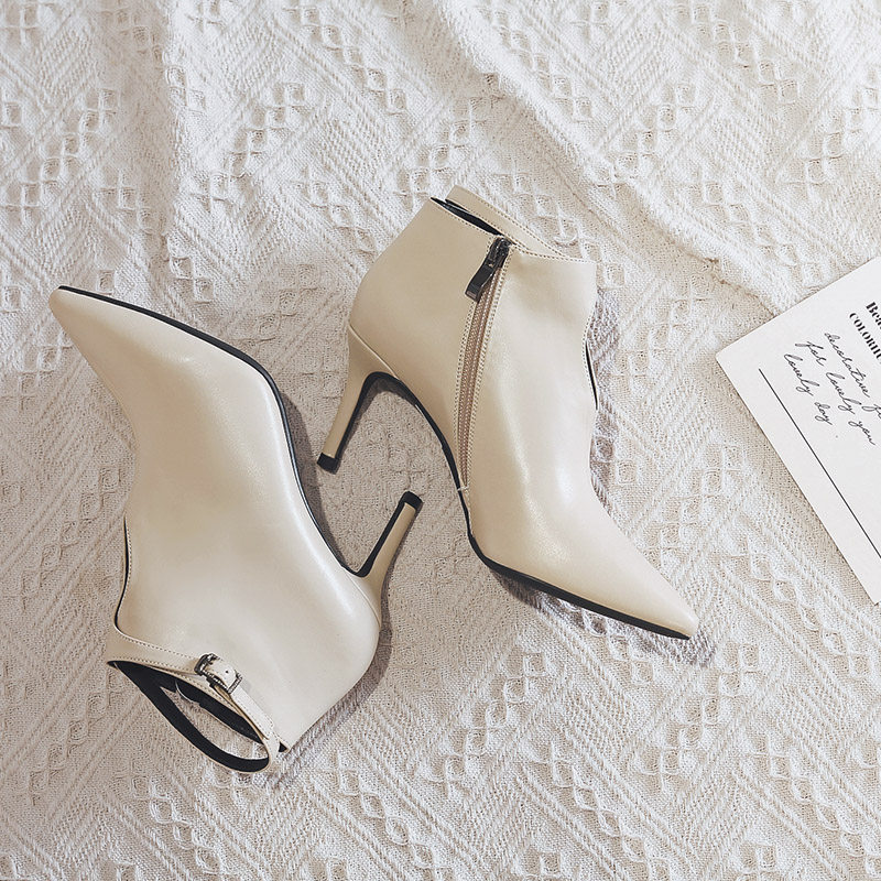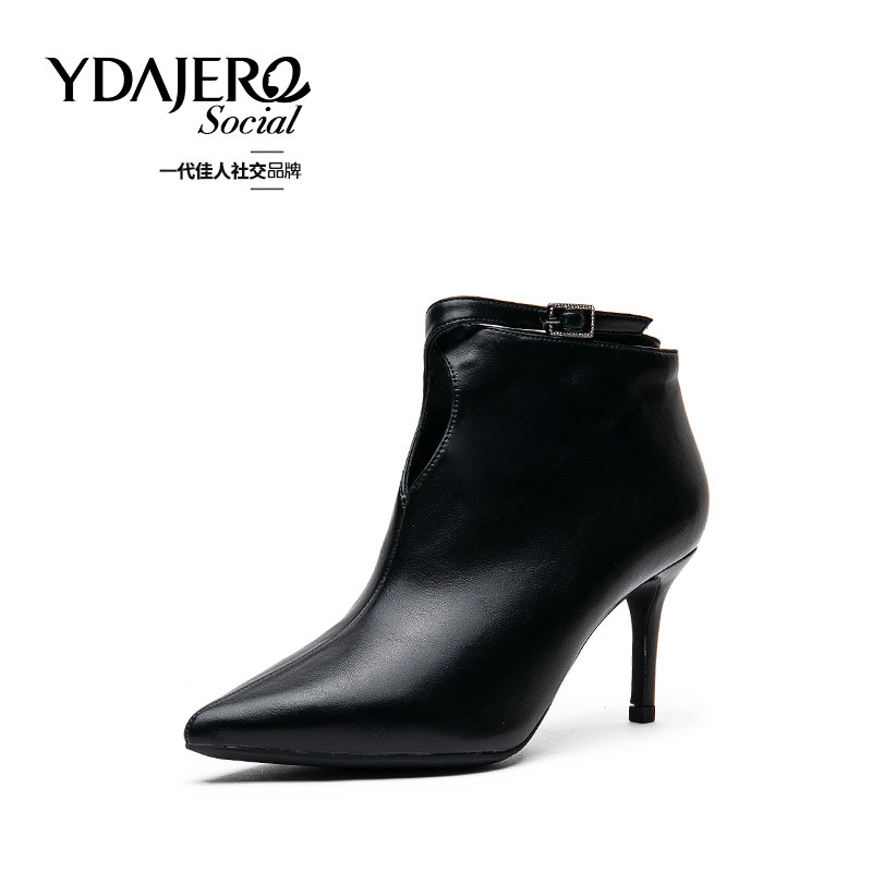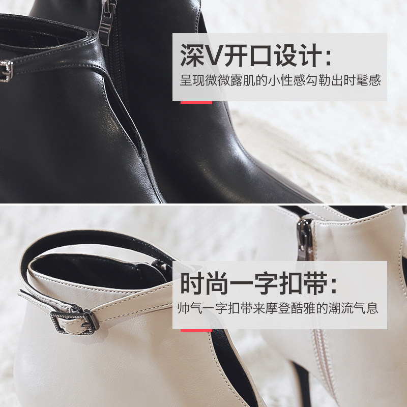 一代佳人 Martens, весенние демисезонные короткие сапоги в английском стиле с заостренным носом на высоком каблуке, популярно в интернете