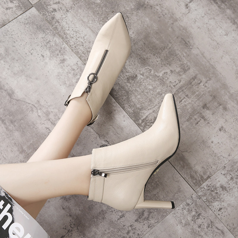 Высокие короткие сапоги с молнией с заостренным носом, утепленные бежевые ботинки