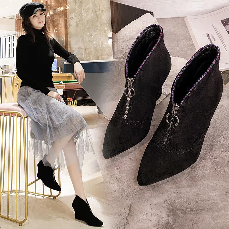 Martens, флисовые матовые демисезонные короткие сапоги на высоком каблуке с заостренным носом, 2020, популярно в интернете