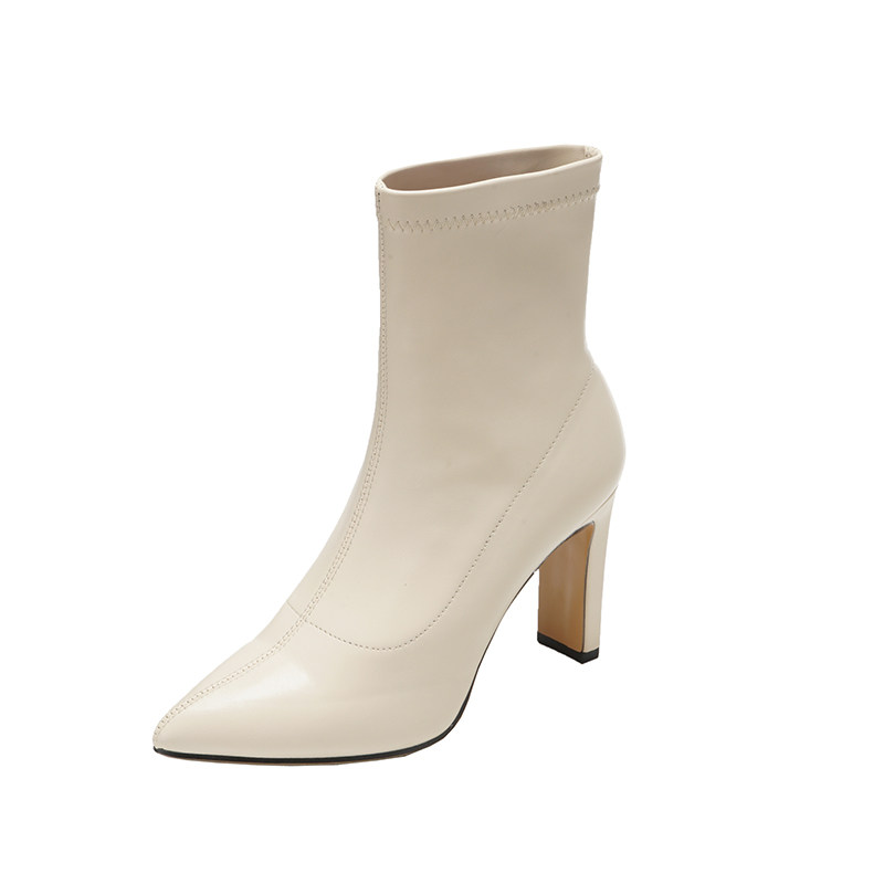 Белые высокие универсальные короткие сапоги с заостренным носом, осенние, тренд сезона, французский стиль, популярно в интернете