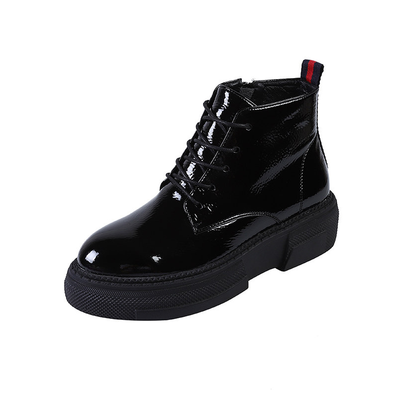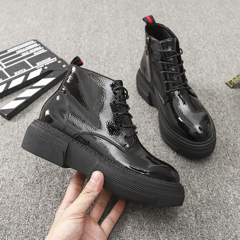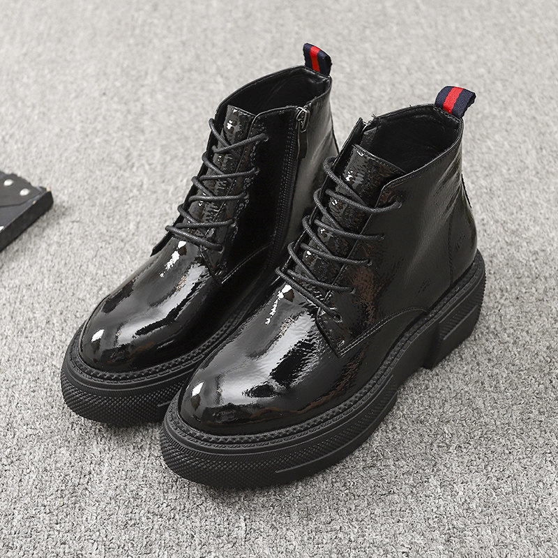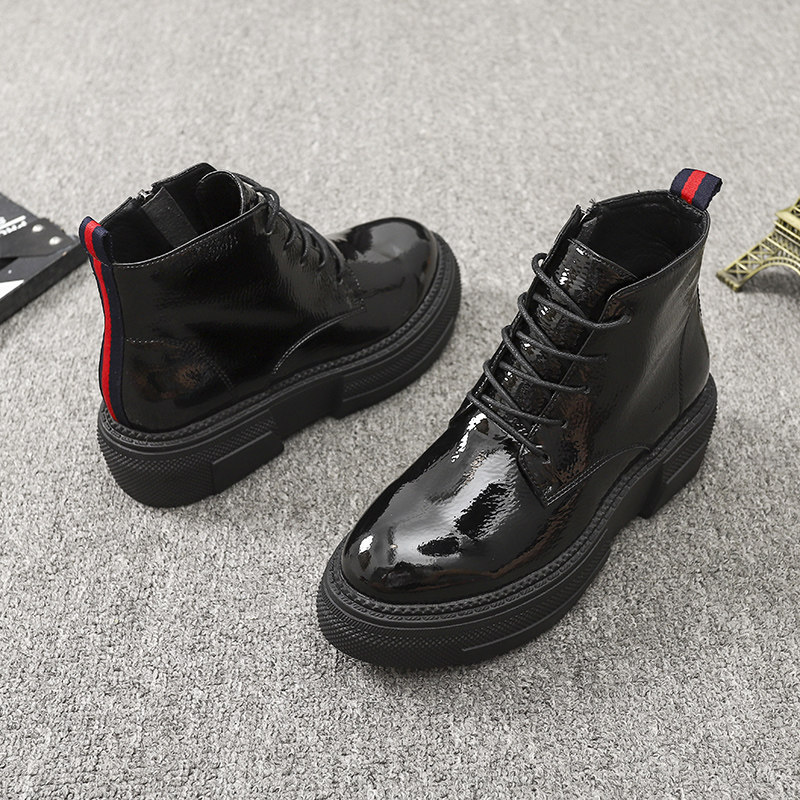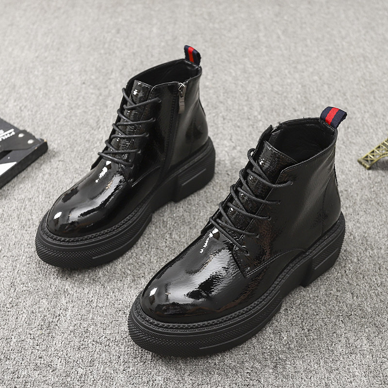 Европейская станция 2023, новые осенние женские туфли, толстая подошва, мятая лакированная кожа, туфли на платформе со шнуровкой и круглым носком, универсальная женская обувь корейской версии