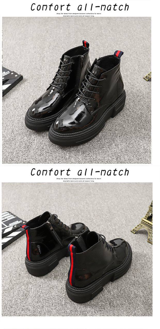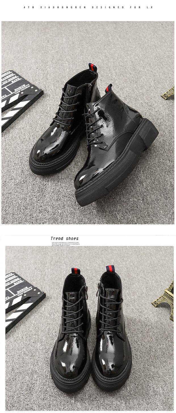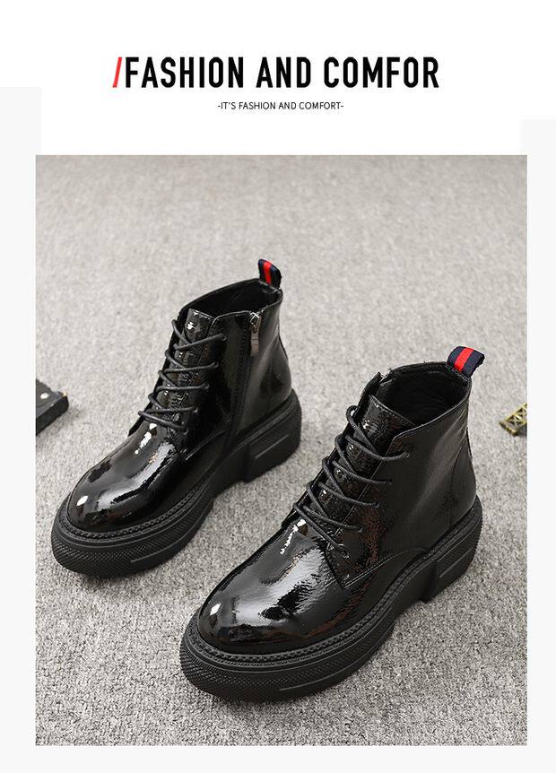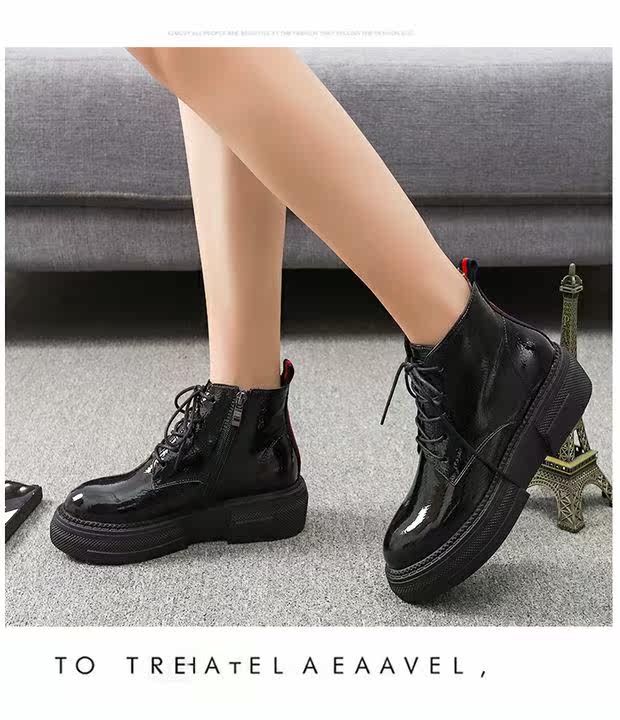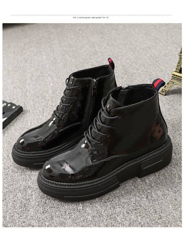 Европейская станция 2023, новые осенние женские туфли, толстая подошва, мятая лакированная кожа, туфли на платформе со шнуровкой и круглым носком, универсальная женская обувь корейской версии