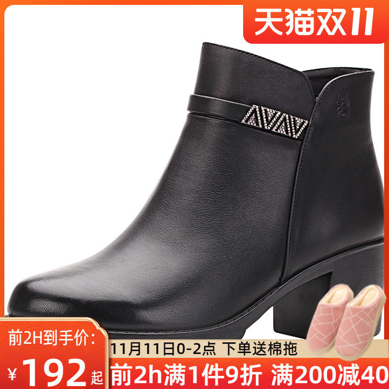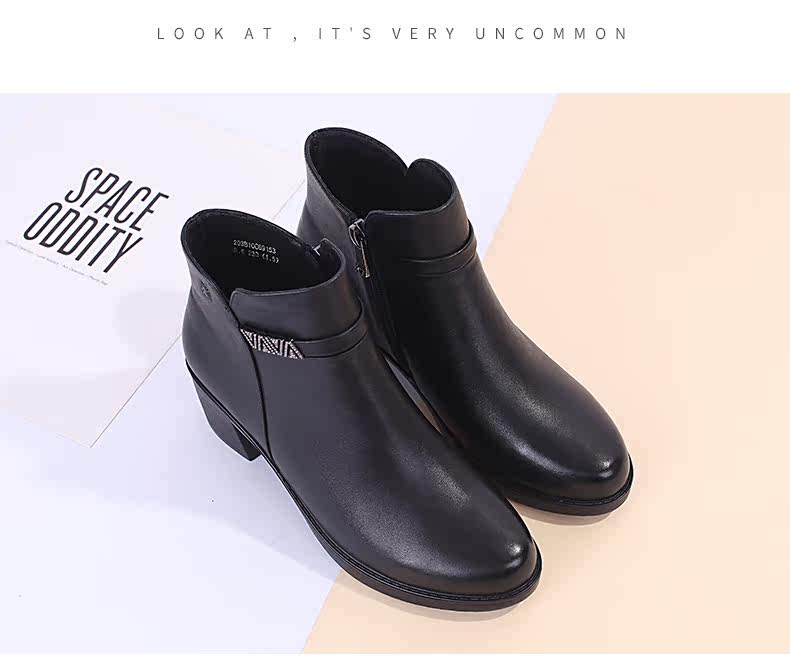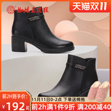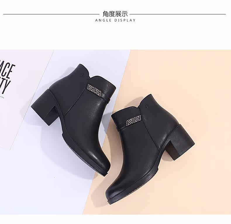Martens, демисезонные черные короткие сапоги на высоком каблуке, ботинки, из натуральной кожи