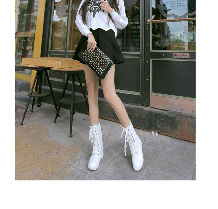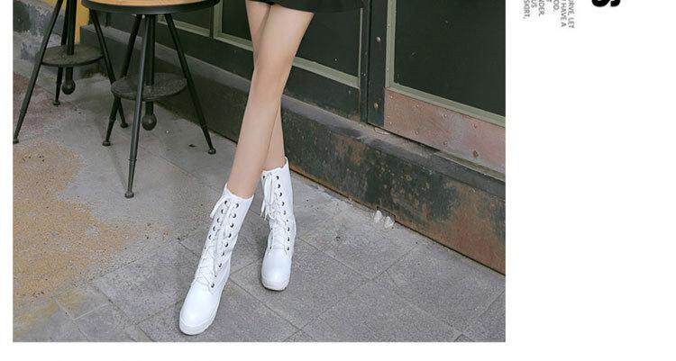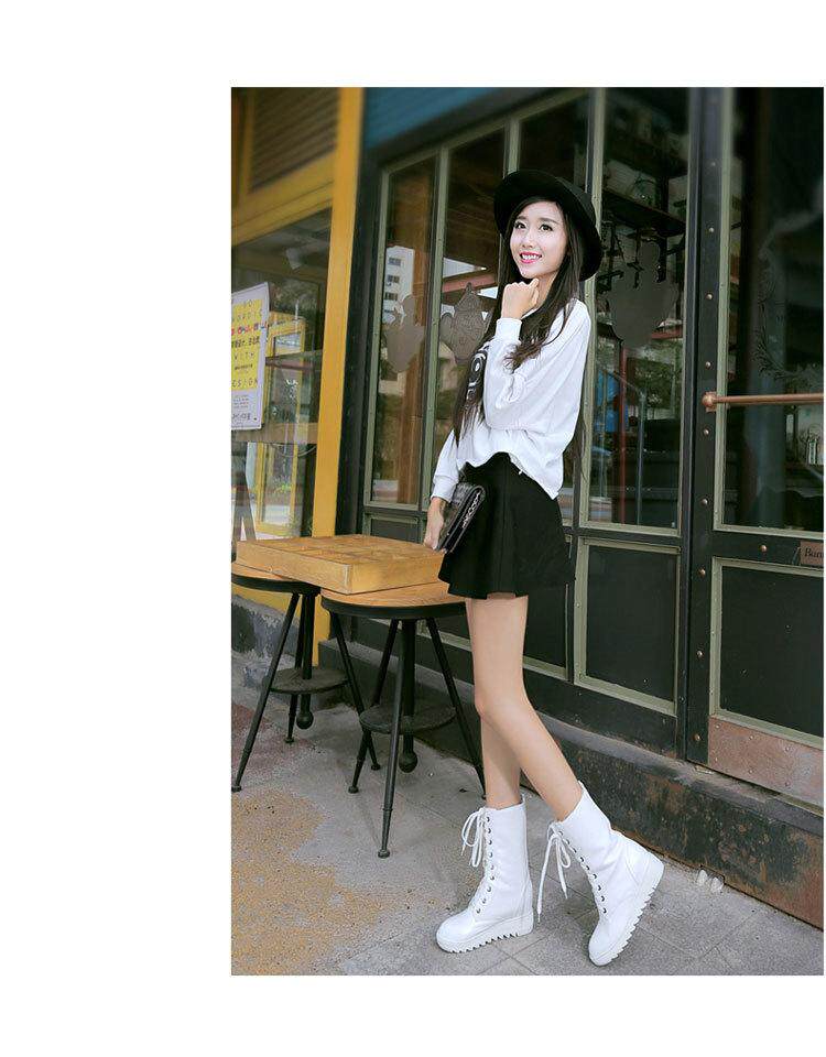 Martens, ботинки, осенние зимние белые короткие сапоги, средней длины, в корейском стиле