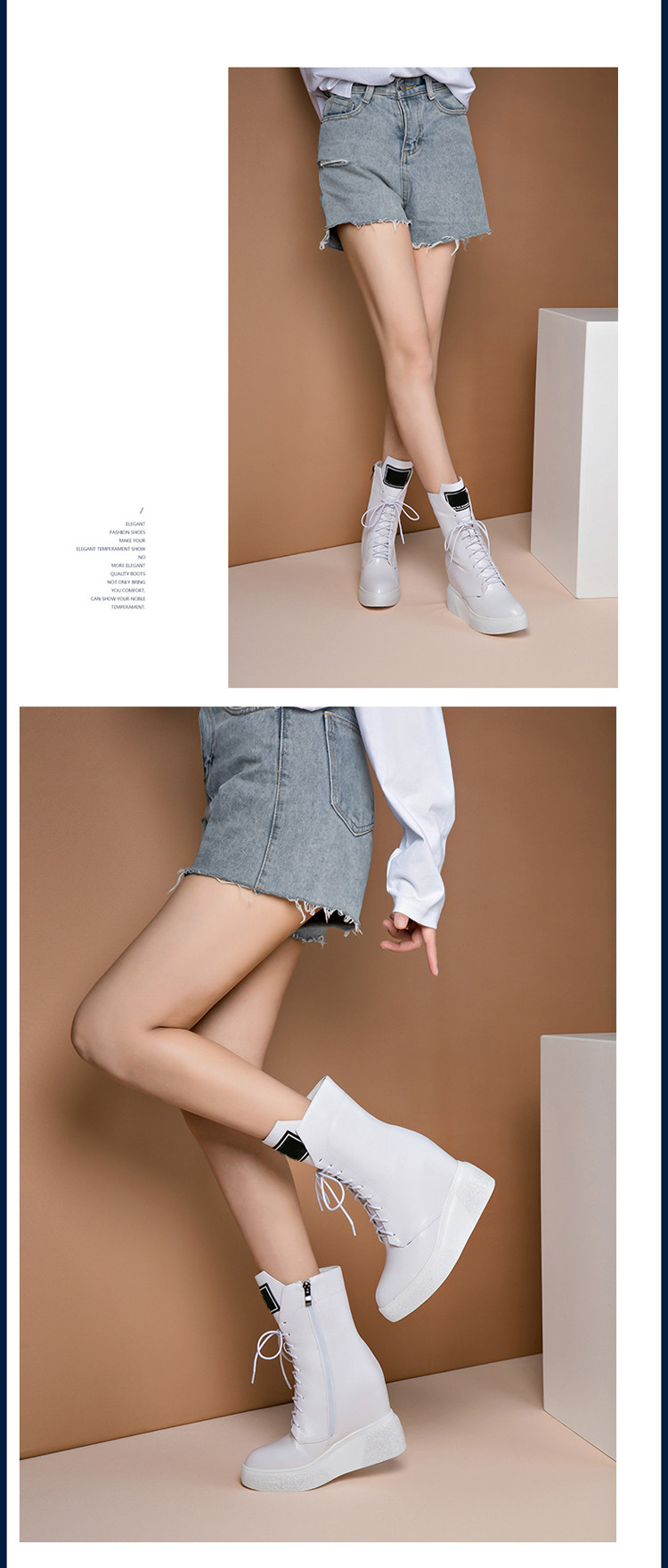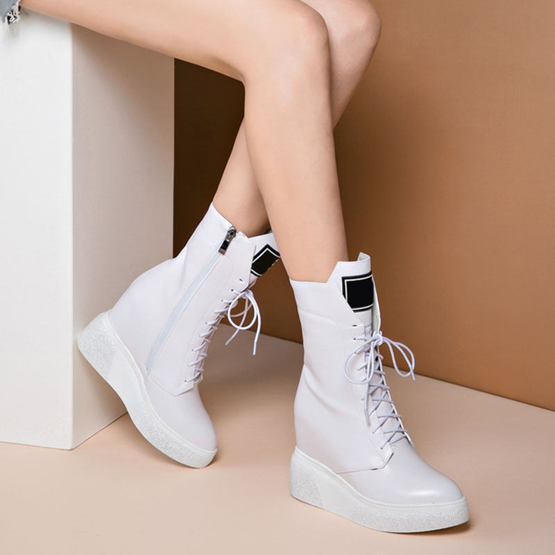 Martens, демисезонные высокие белые короткие сапоги, универсальная обувь, ботинки на платформе, из натуральной кожи, 10см, по фигуре