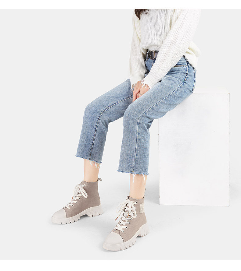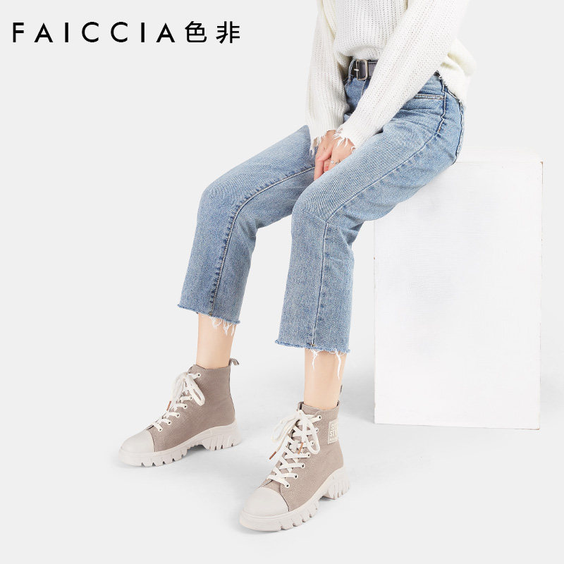 Sefei/Новинка осени и зимы 2019, ботинки martin, женские модные универсальные парусиновые туфли, рабочие ботинки с высоким берцем, ботинки дезерты D859