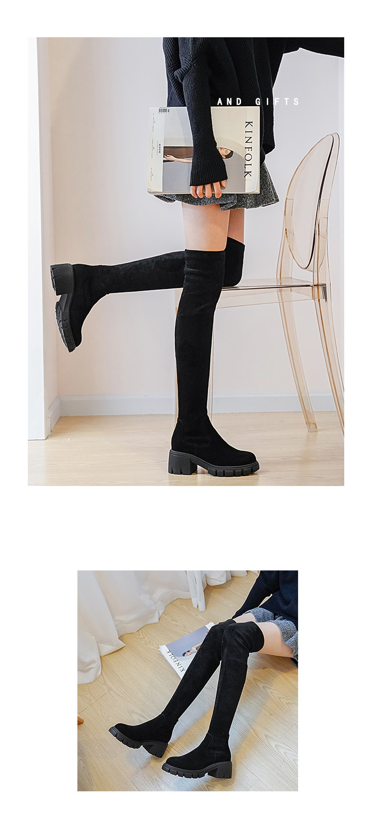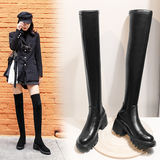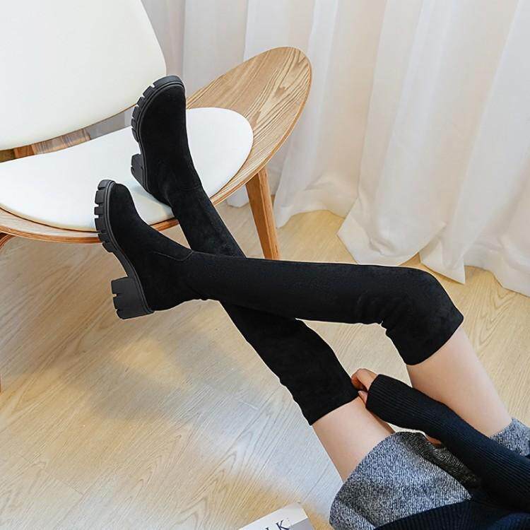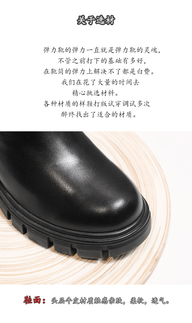 Эластичные высокие сапоги на платформе, утепленные высокие ботинки, из натуральной кожи