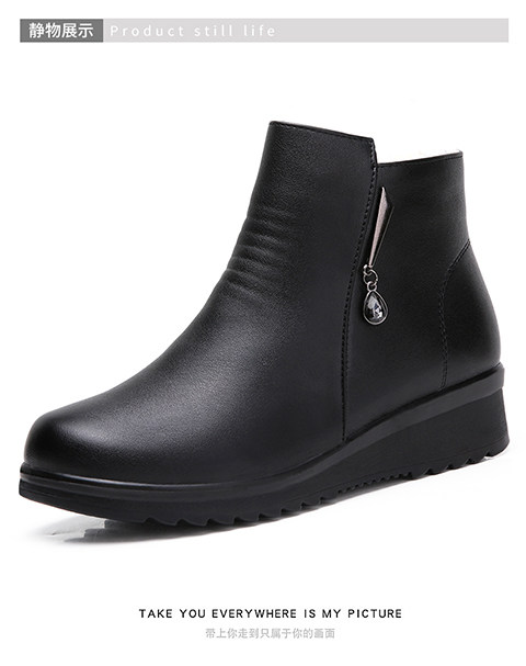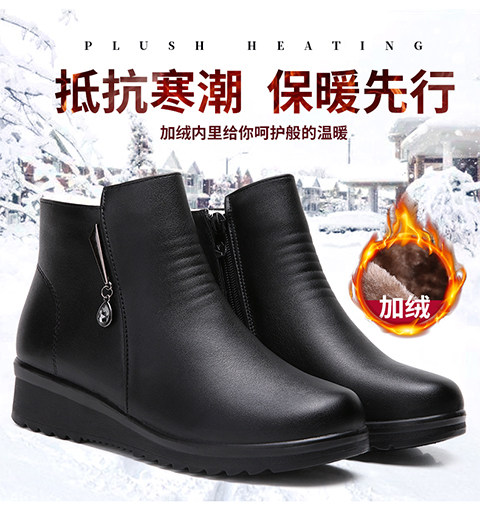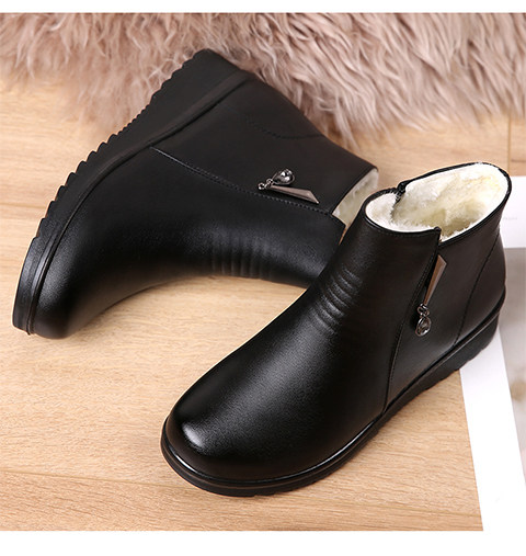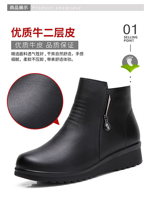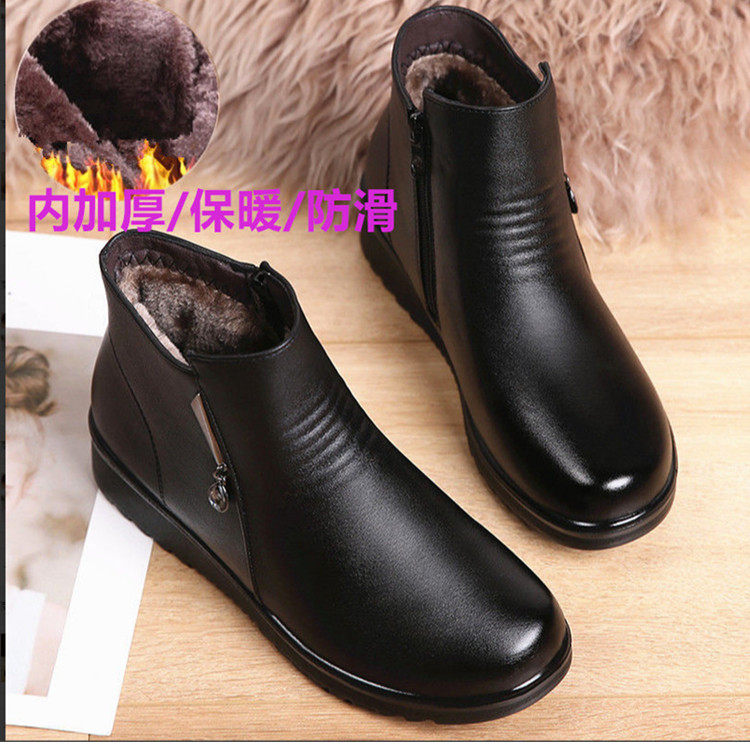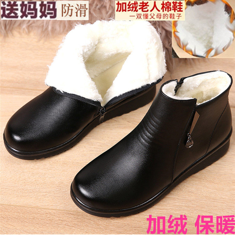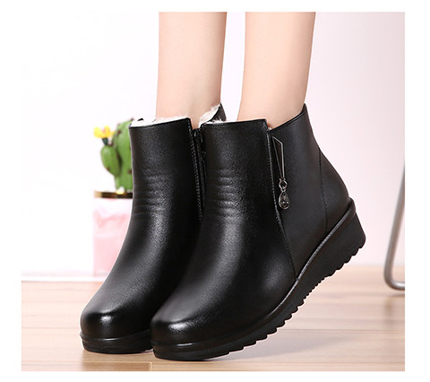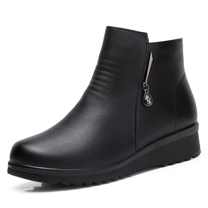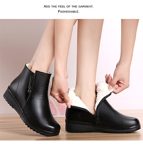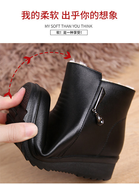 Демисезонная обувь для матери, короткие сапоги, флисовые зимние ботинки для кожаной обуви, из натуральной кожи, мягкая подошва