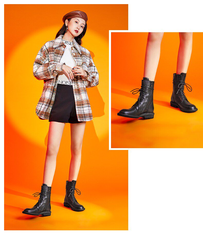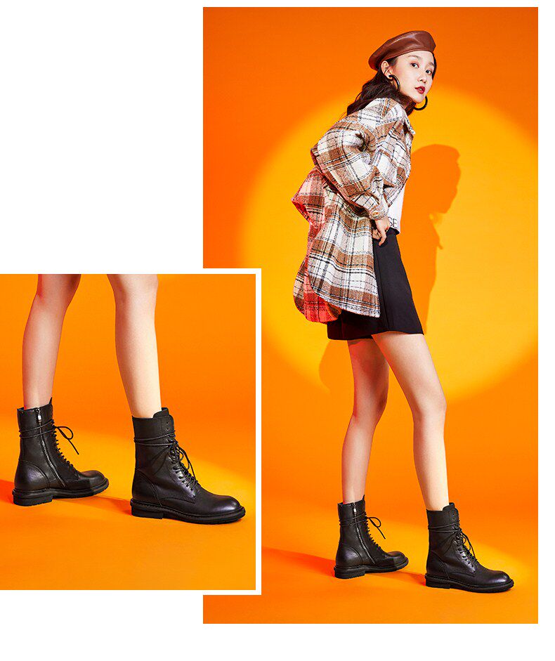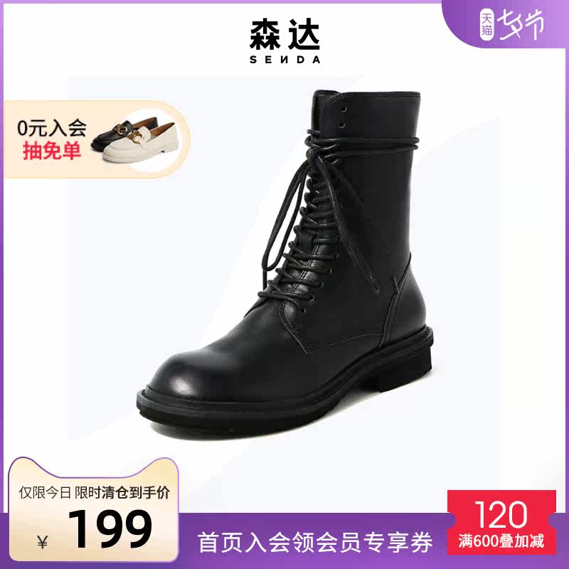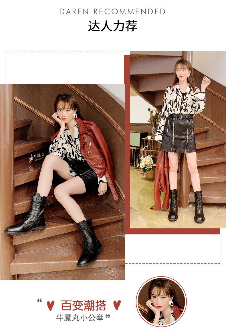 Senda Dong Ins Internet Celebrity Thin Boots British Trendy Cool Motorcycle Lace-Up Ann Women's Martin Boots Z1925DZ9