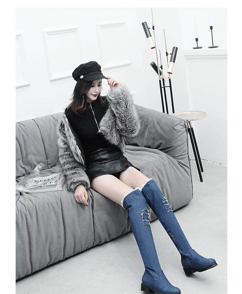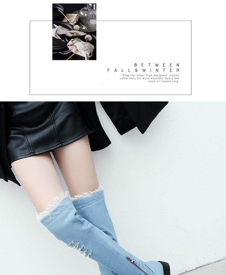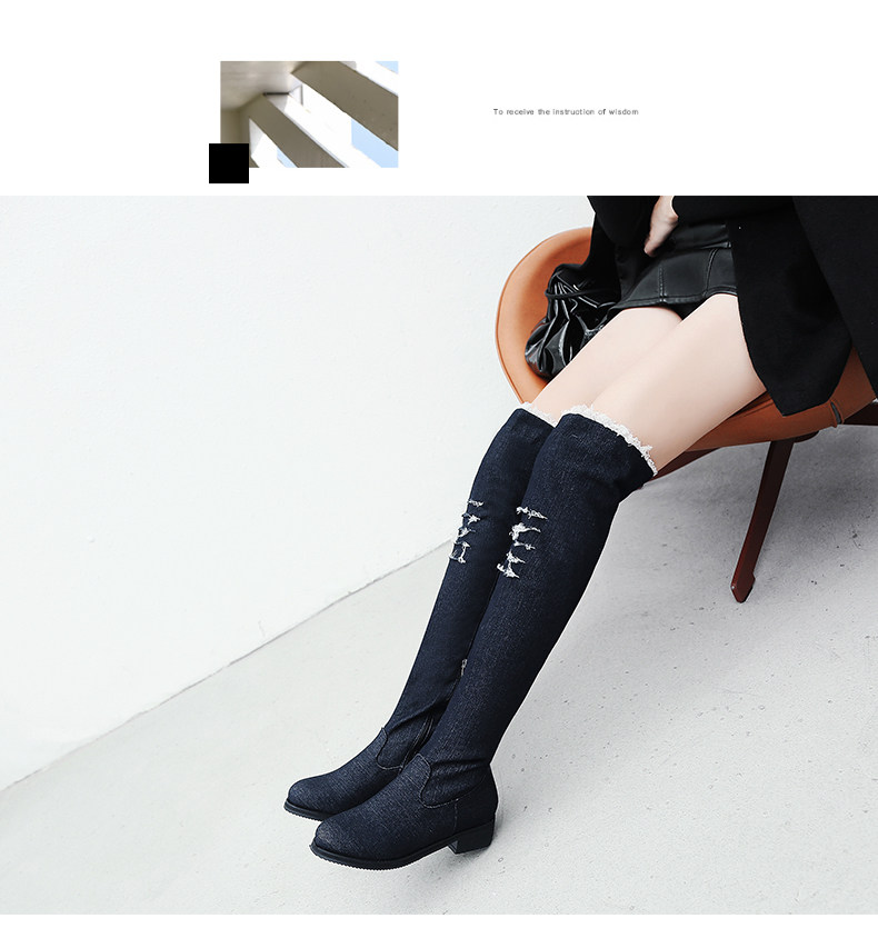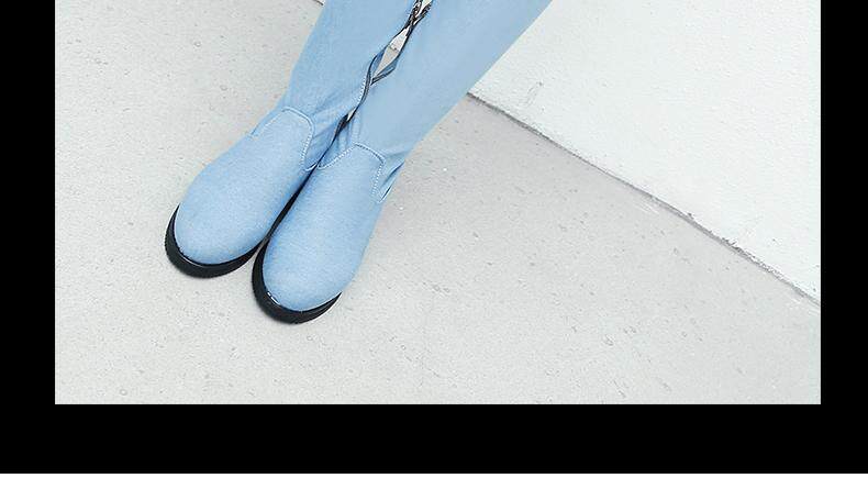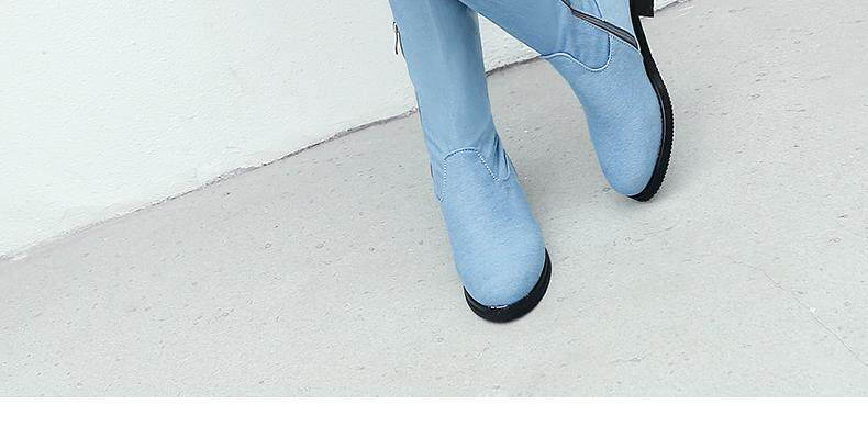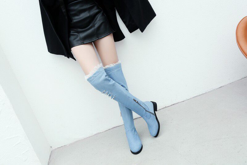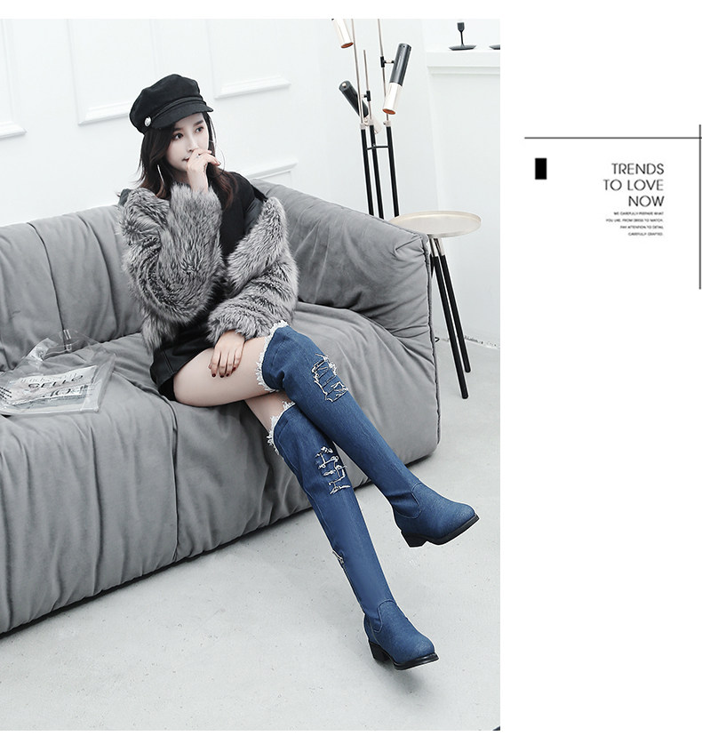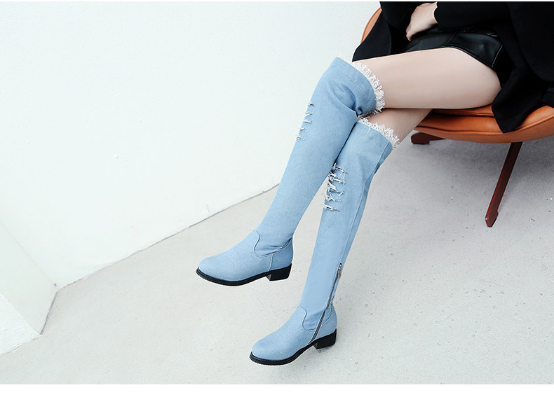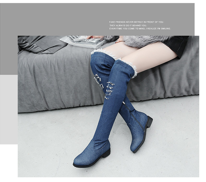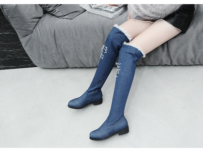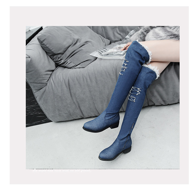 Демисезонные джинсовые эластичные высокие сапоги для школьников и студентов, европейский стиль