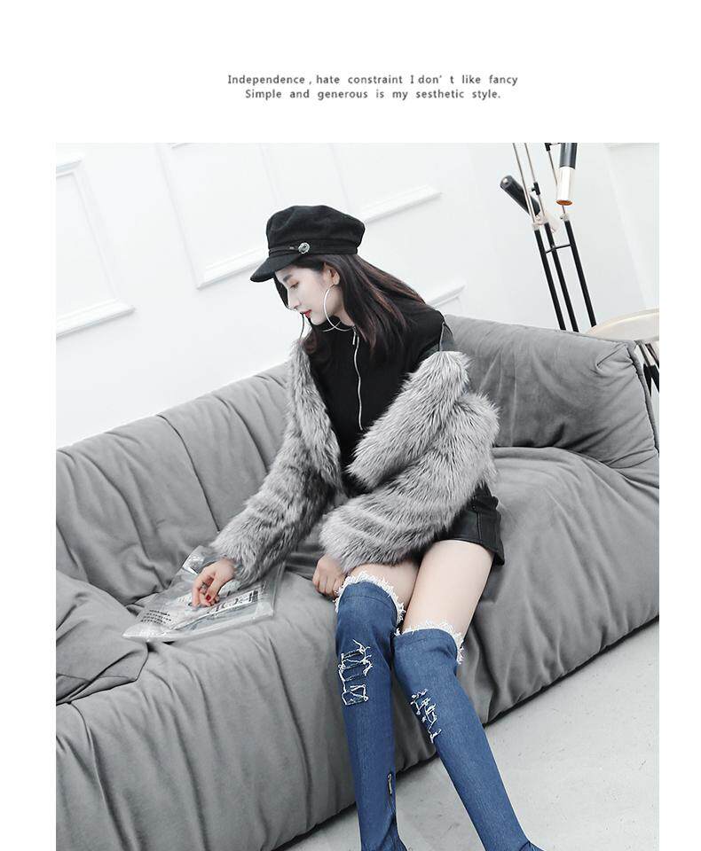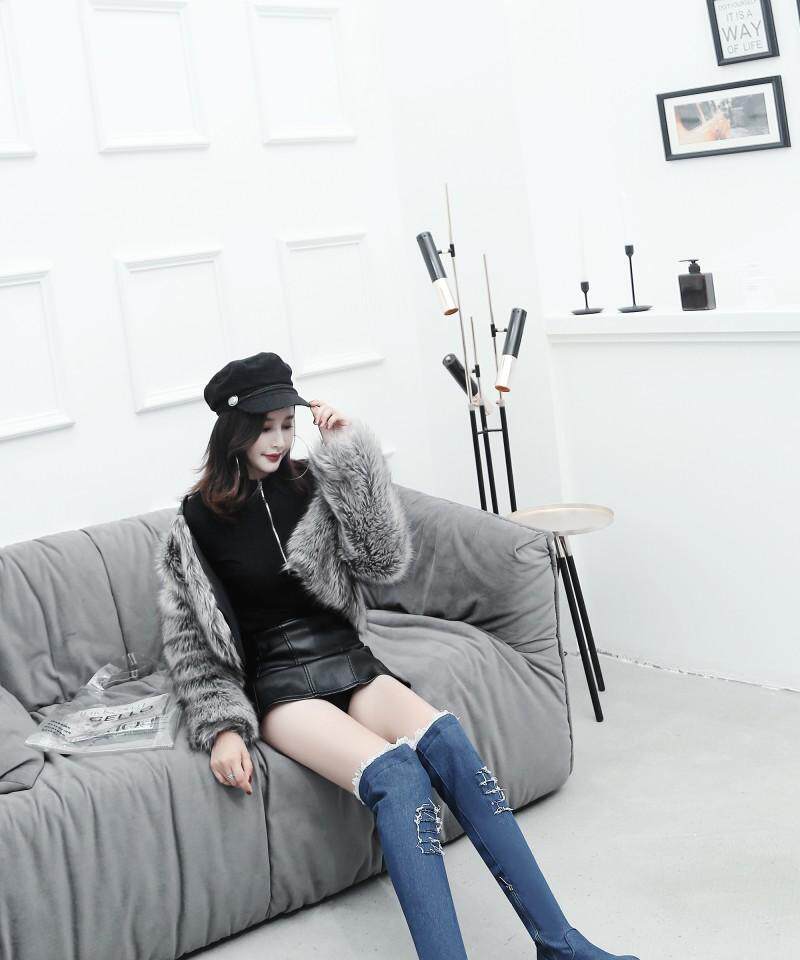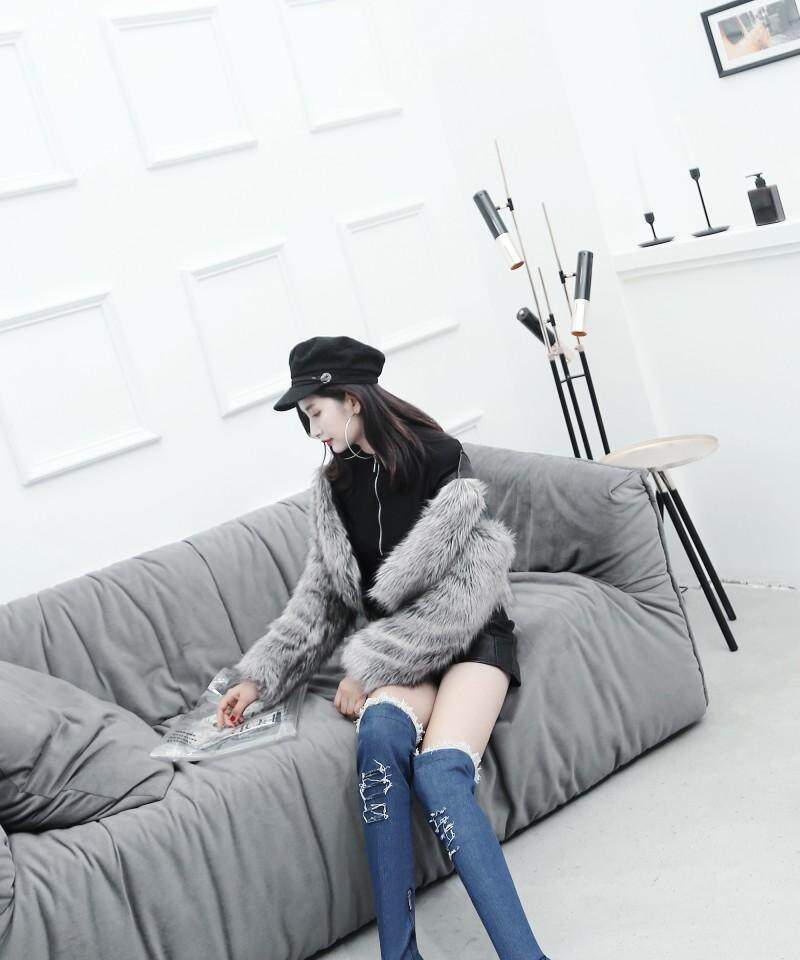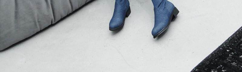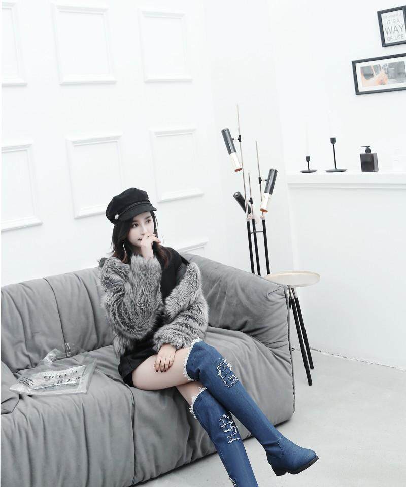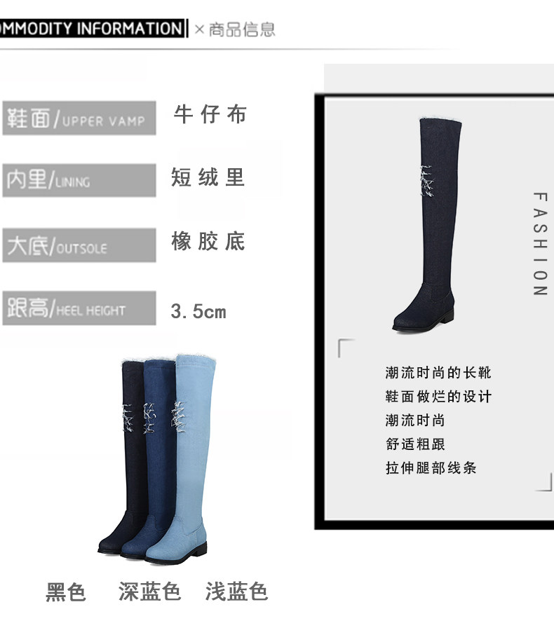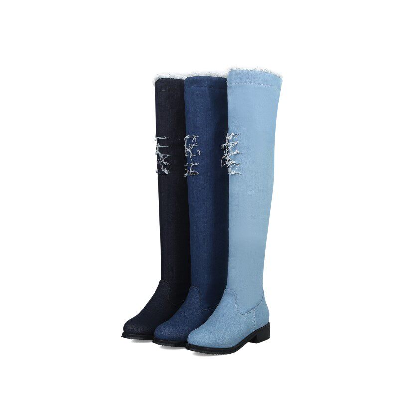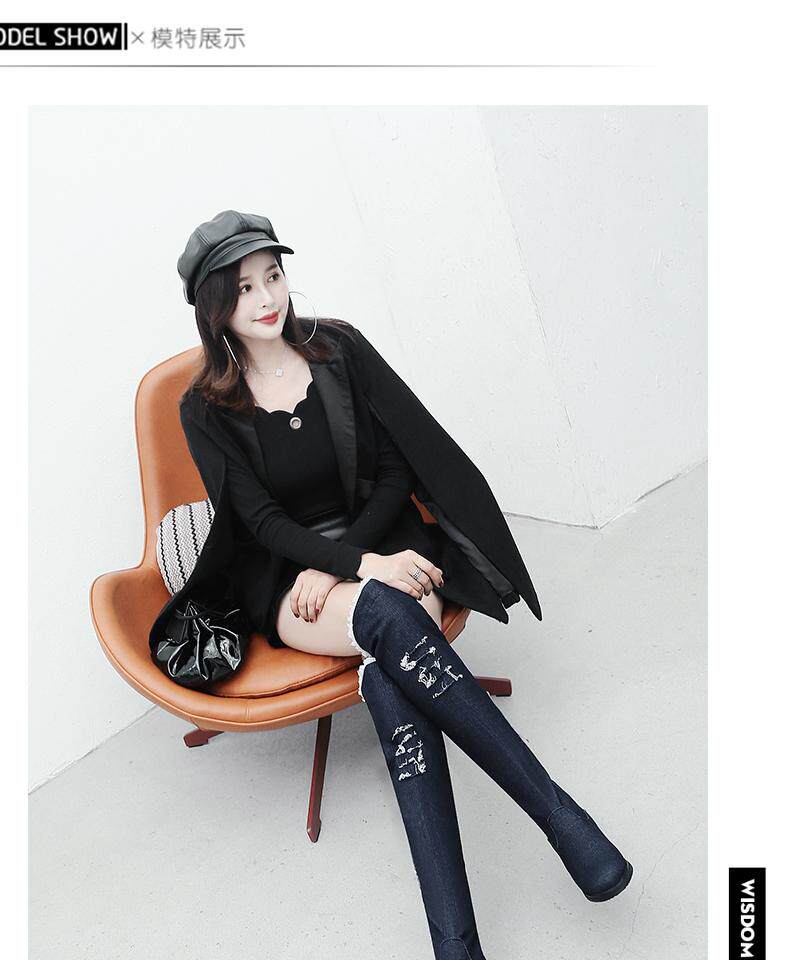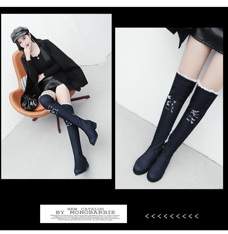 Демисезонные джинсовые эластичные высокие сапоги для школьников и студентов, европейский стиль