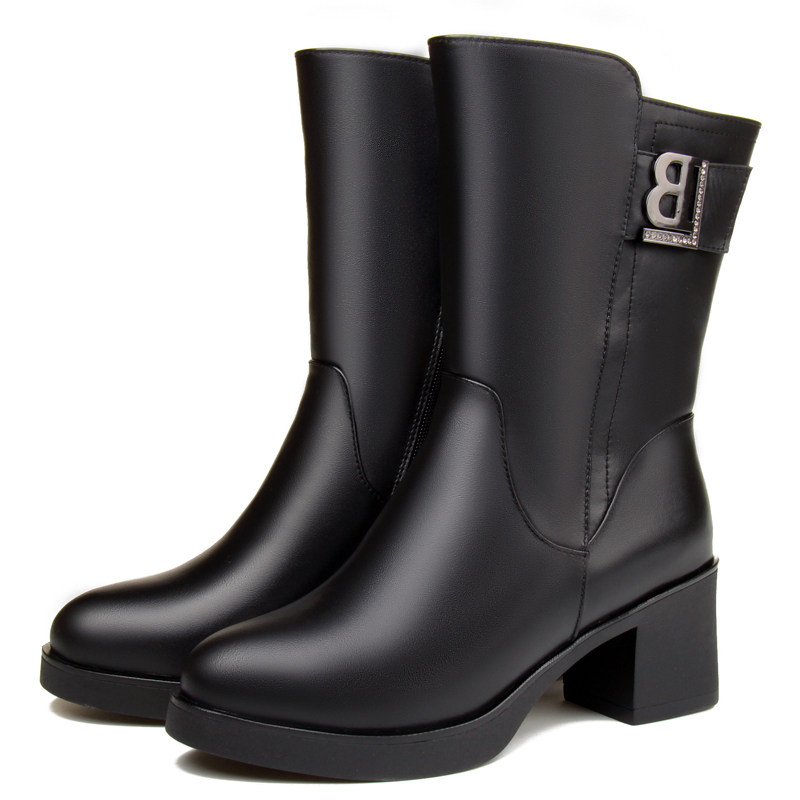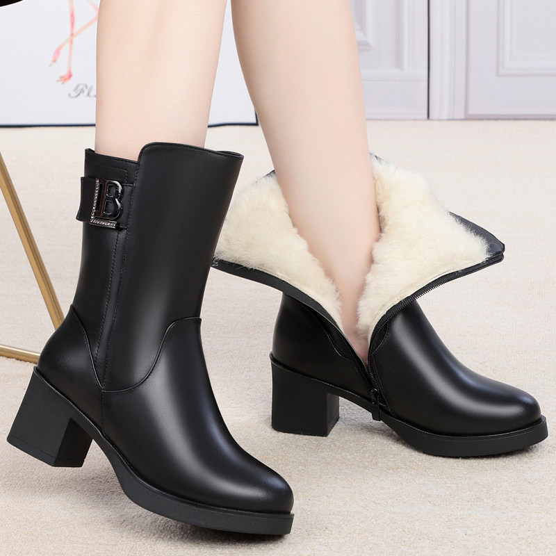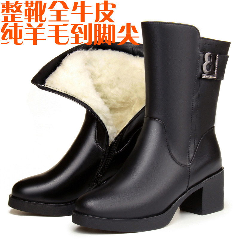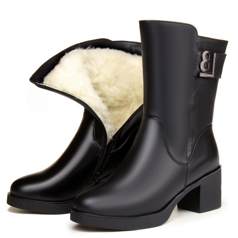 Удерживающая тепло обувь, зимние флисовые сапоги для матери, из натуральной кожи, средней длины