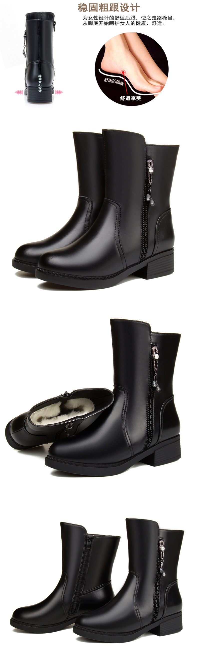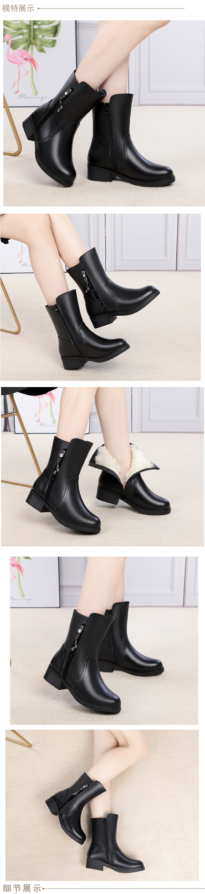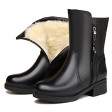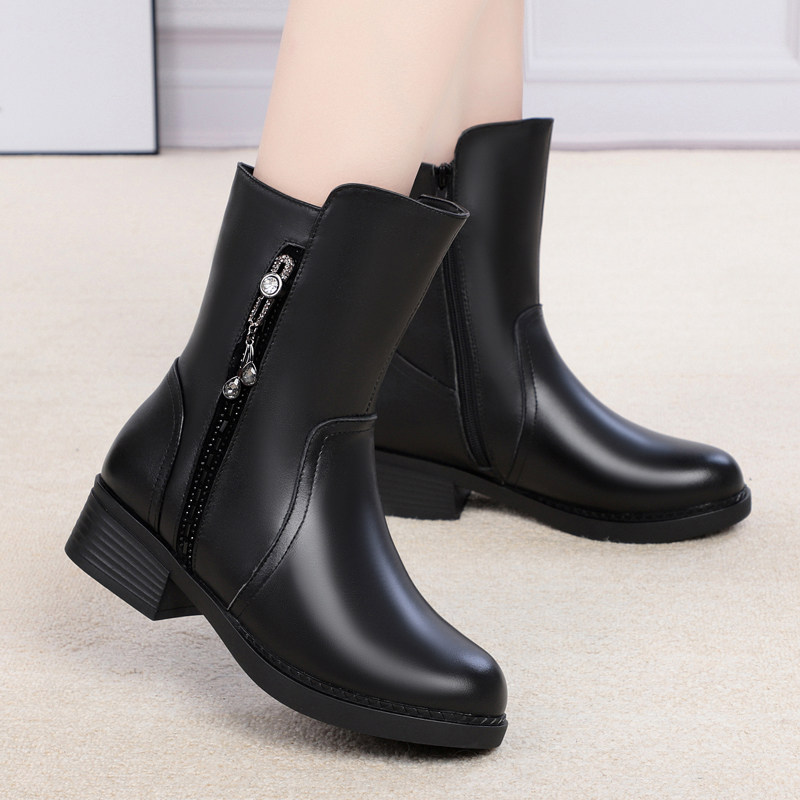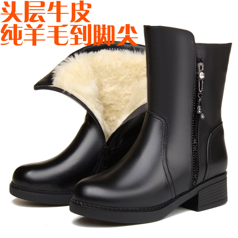 Удерживающая тепло зимняя обувь, флисовые сапоги для матери, из натуральной кожи, средней длины