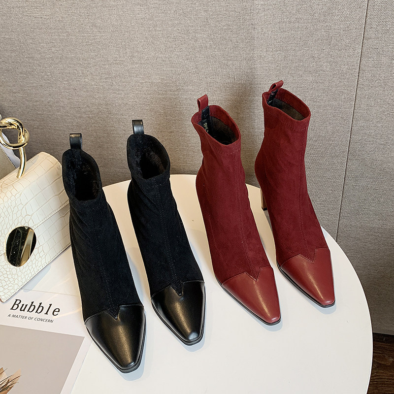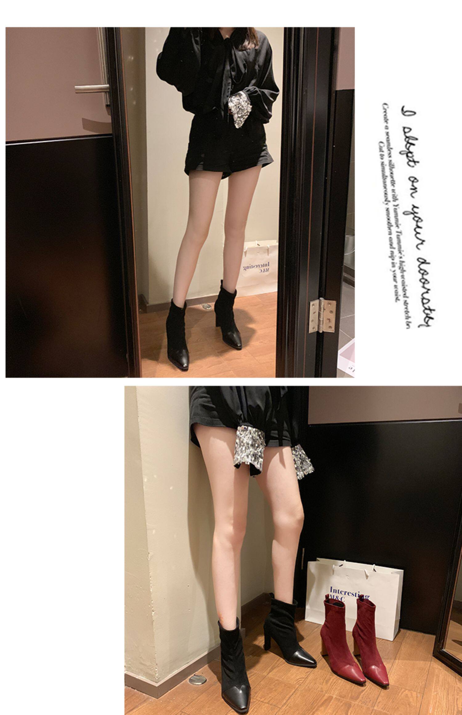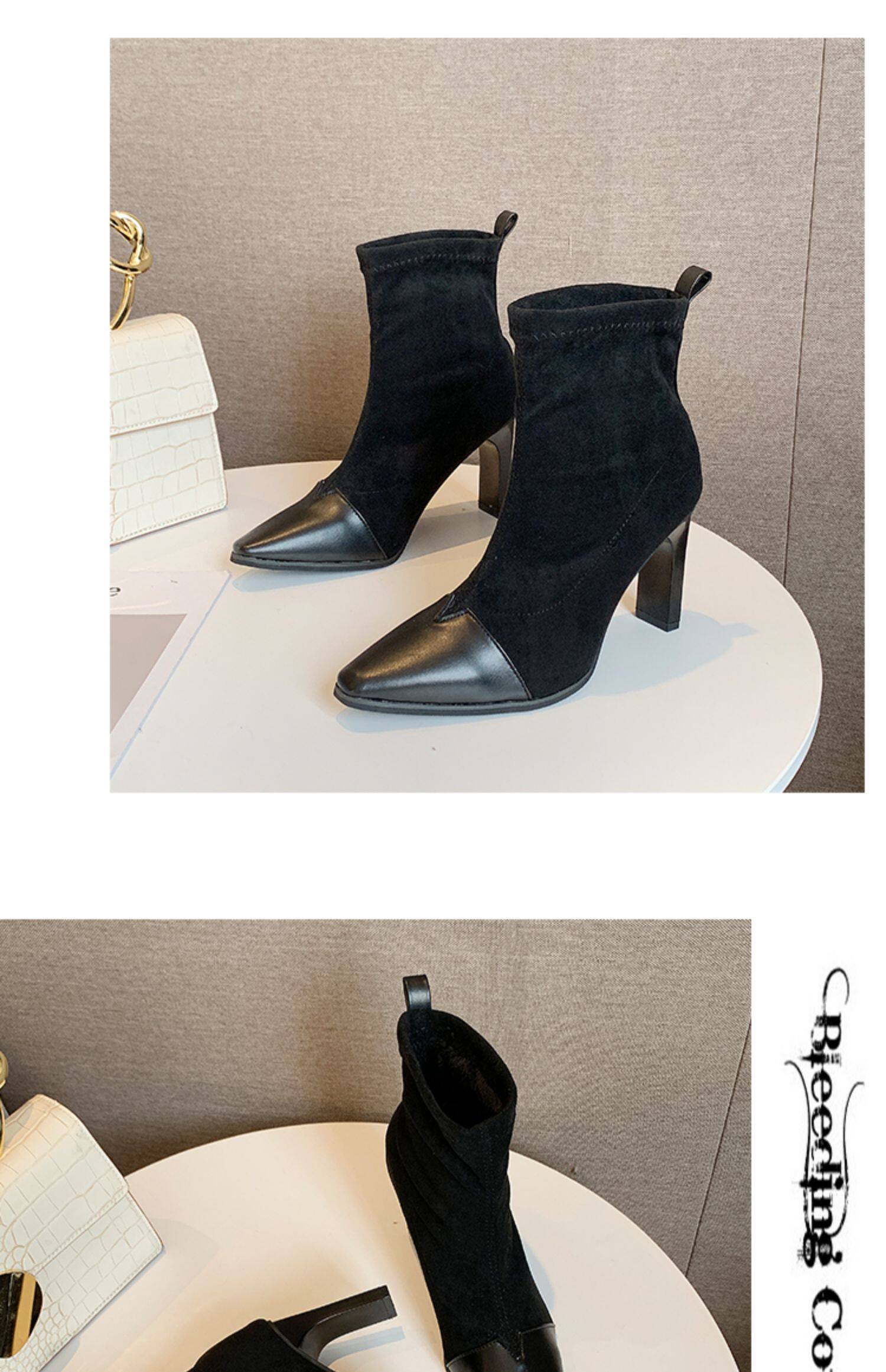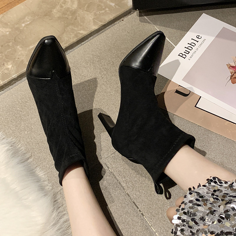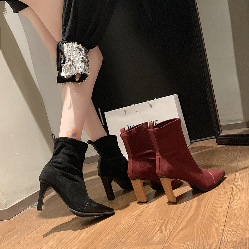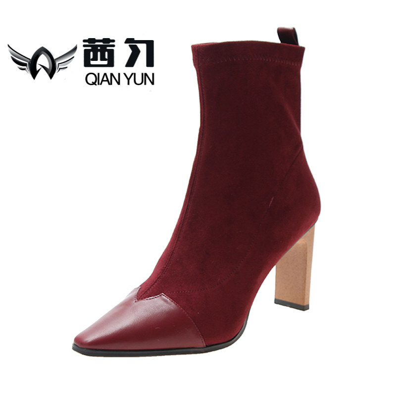 Демисезонные носки с заостренным носом, эластичные короткие сапоги на высоком каблуке, 2019, популярно в интернете, средней длины