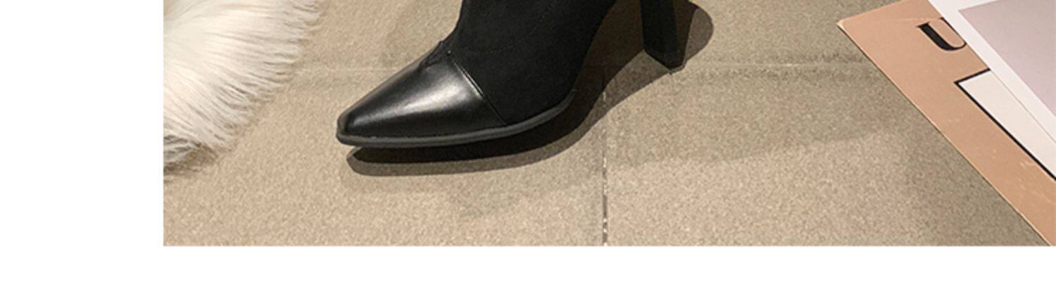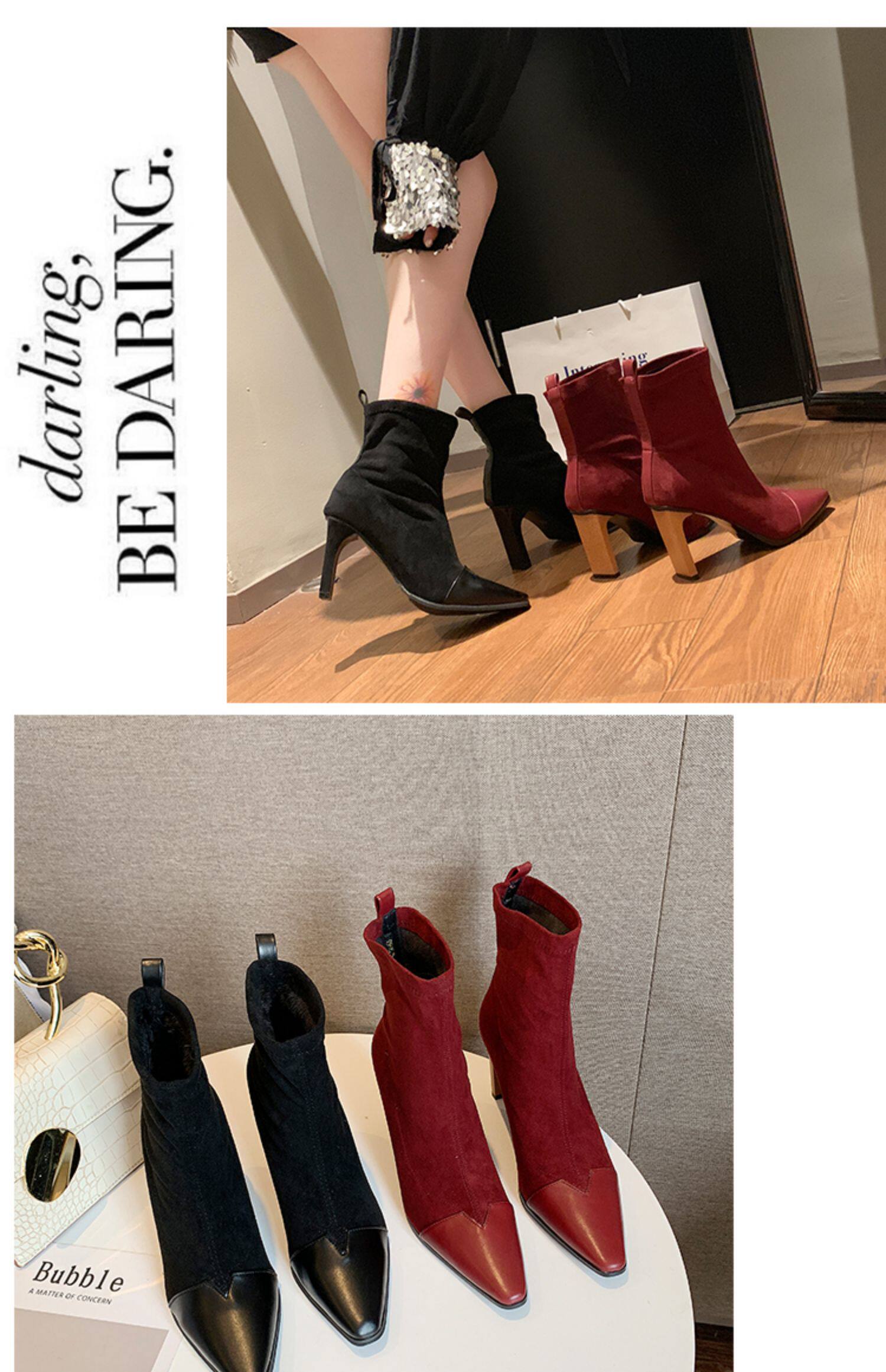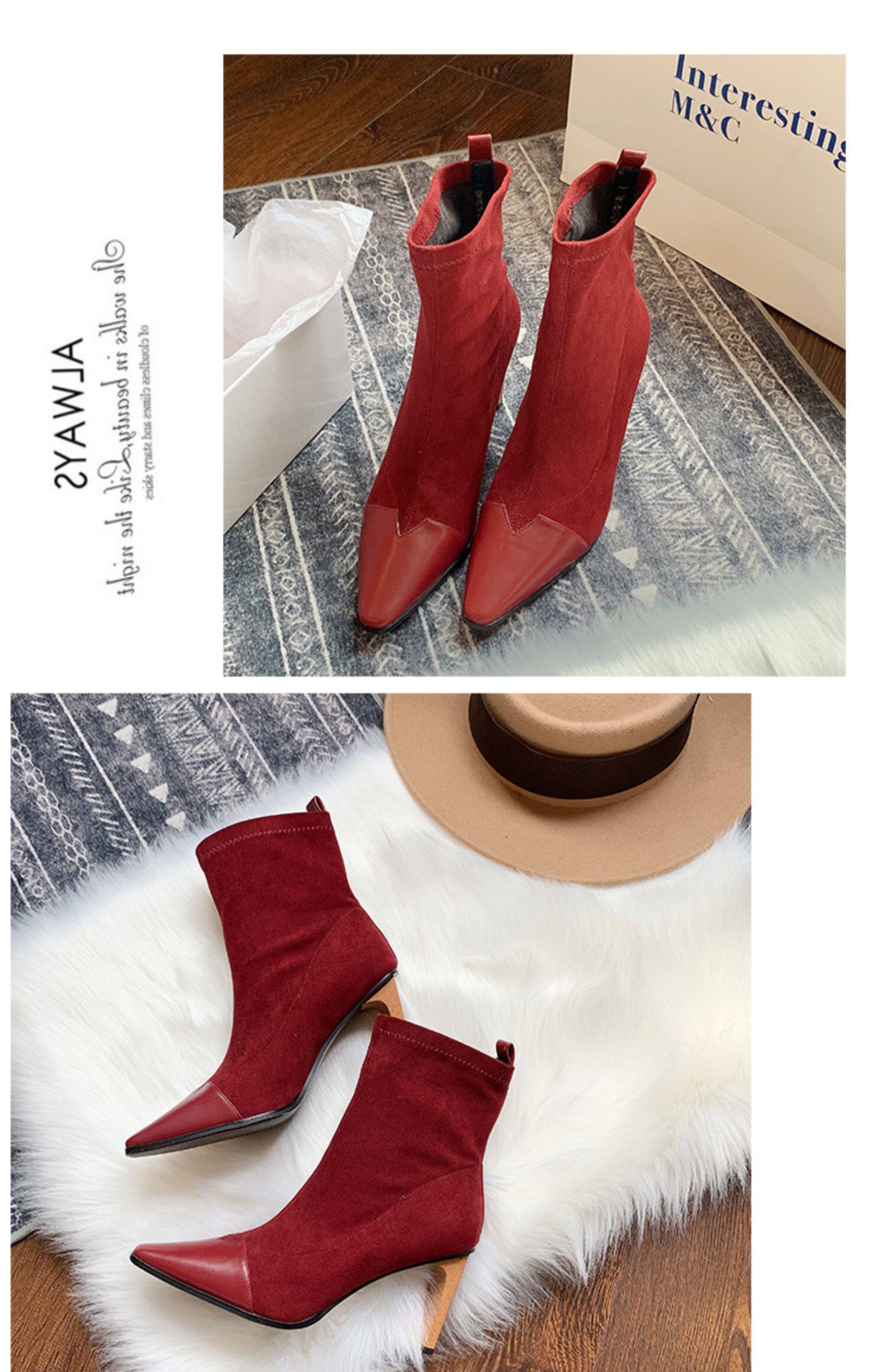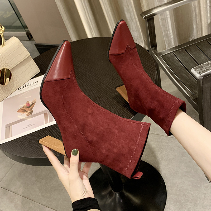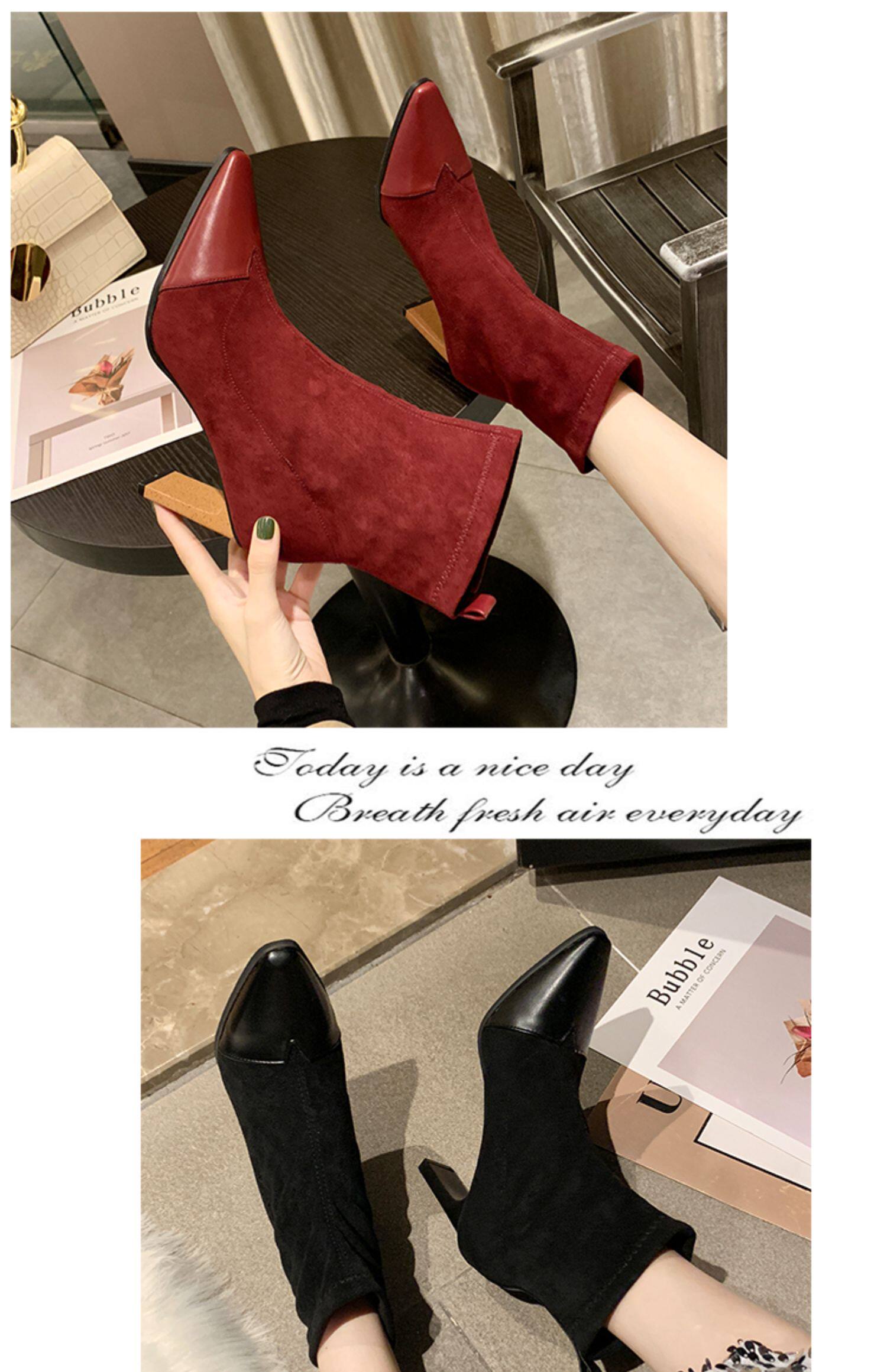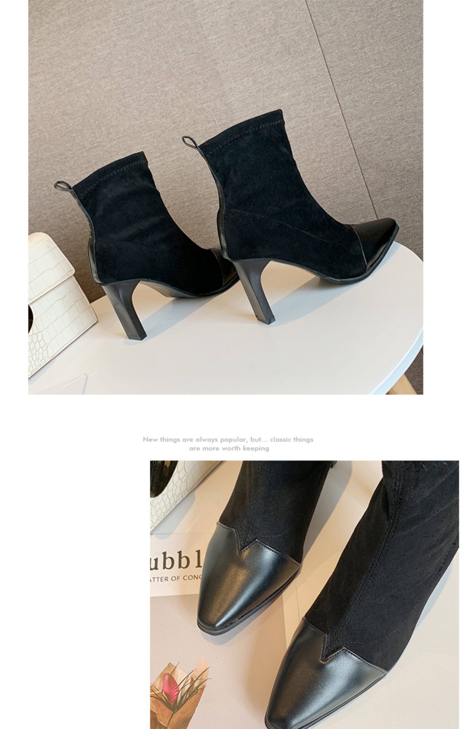 Демисезонные носки с заостренным носом, эластичные короткие сапоги на высоком каблуке, 2019, популярно в интернете, средней длины