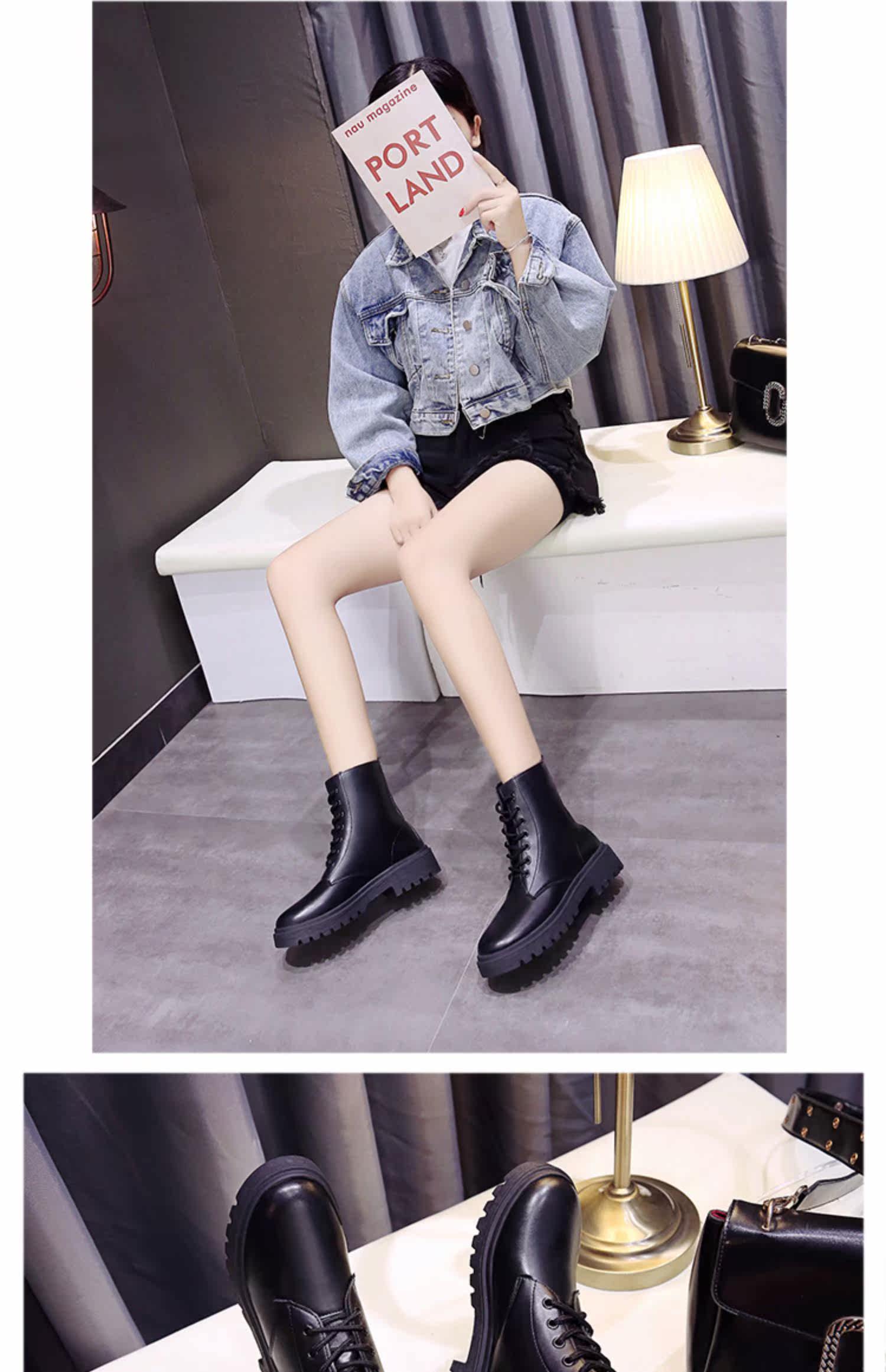 Martens, высокие демисезонные короткие сапоги в английском стиле на платформе, 2019, осенние, в британском стиле, популярно в интернете