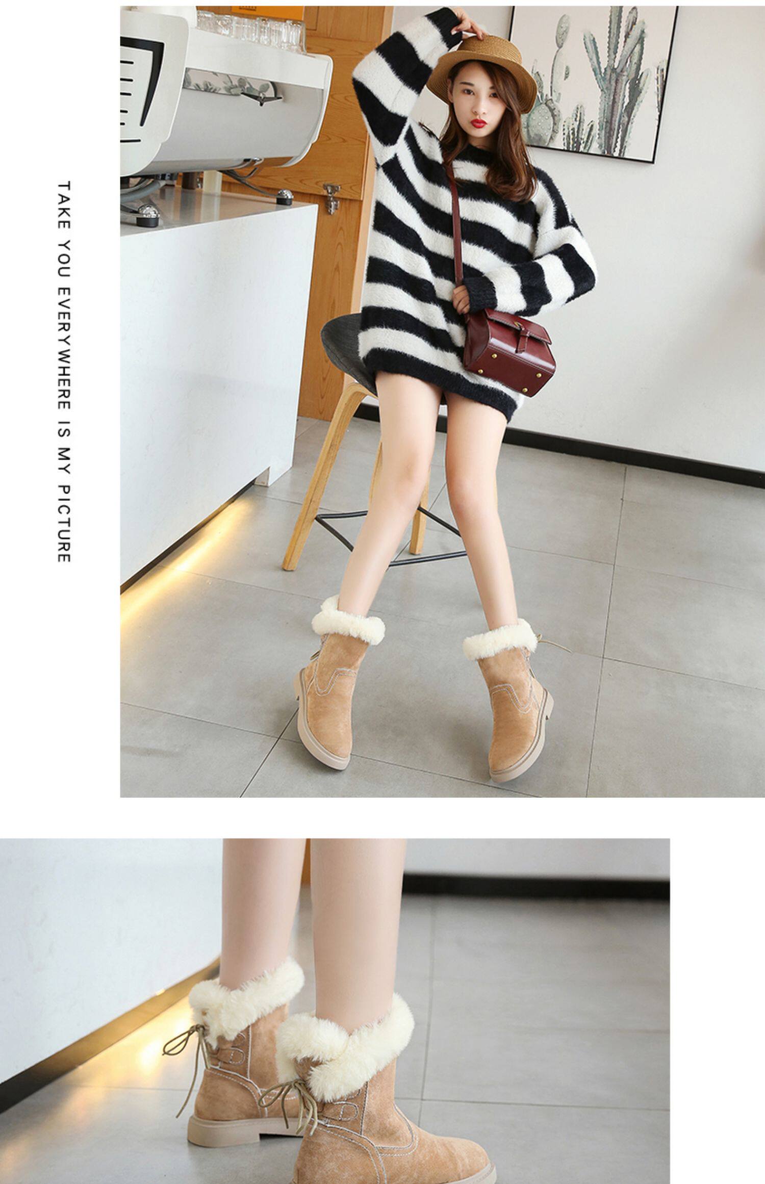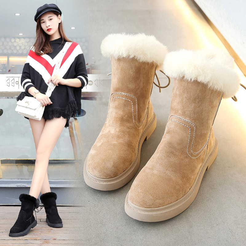 Martens, нескользящие модные сапоги, флисовая зимняя обувь на платформе, 2019, средней длины