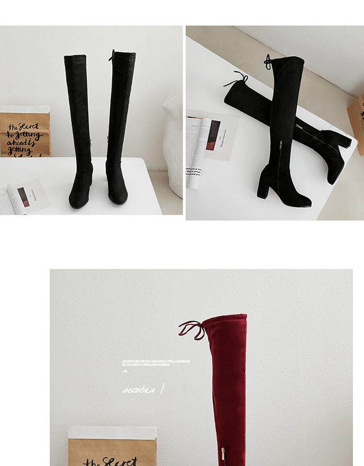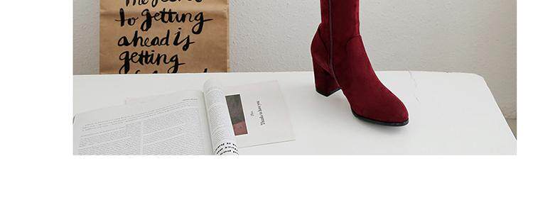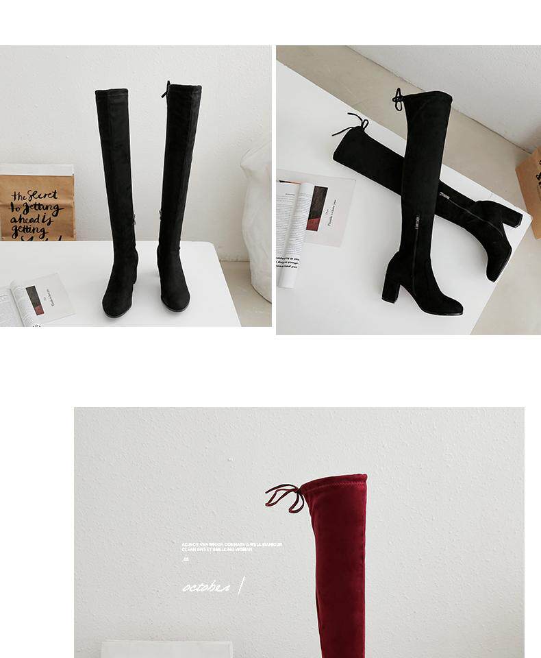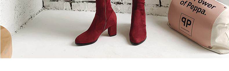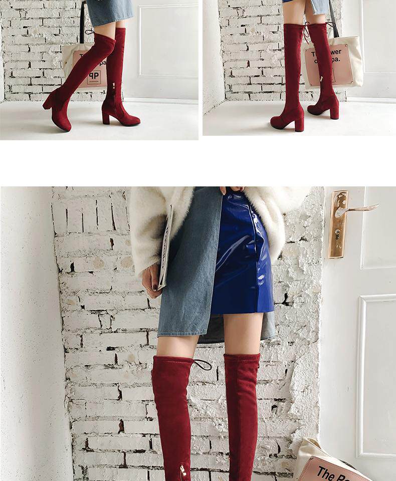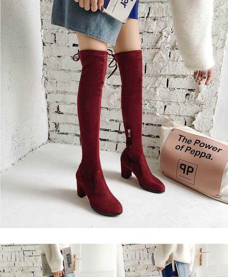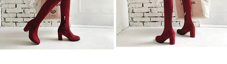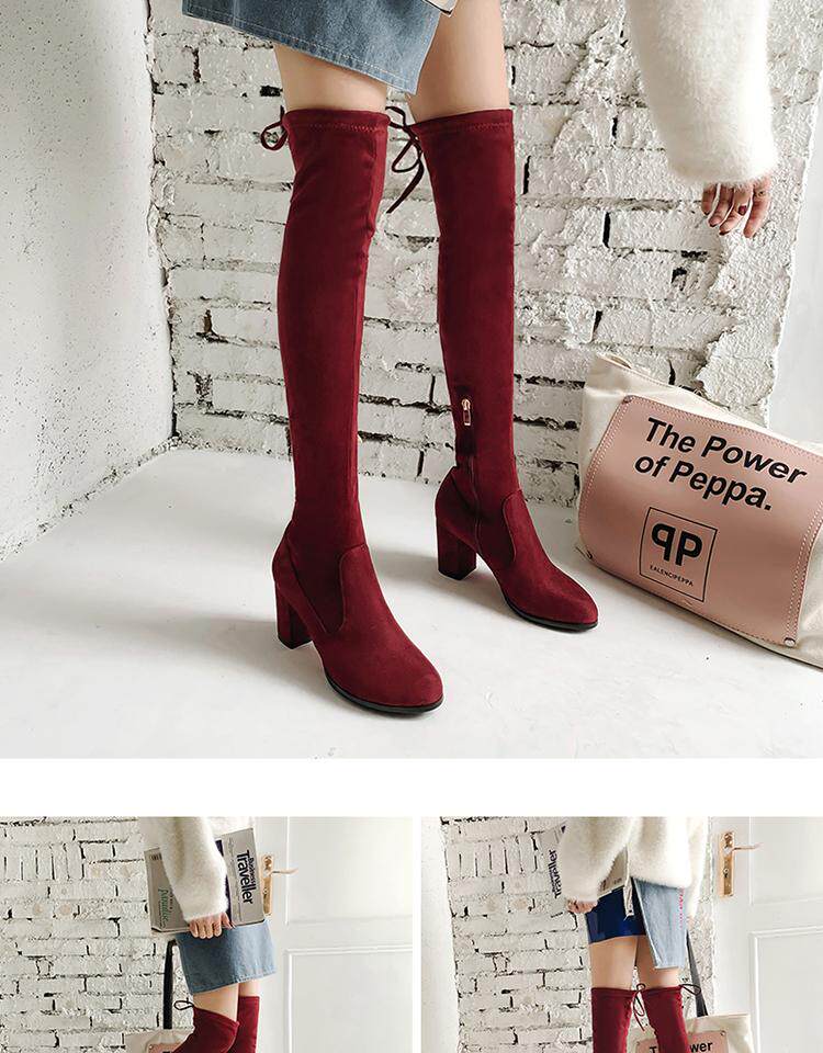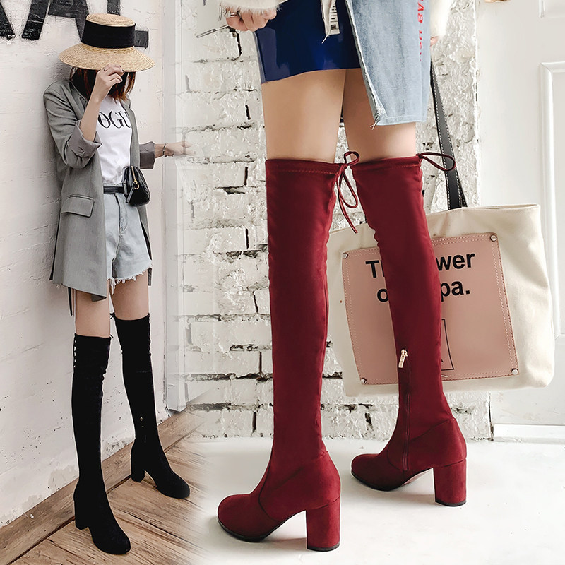 Осенние бордовые эластичные высокие сапоги с молнией, 2019