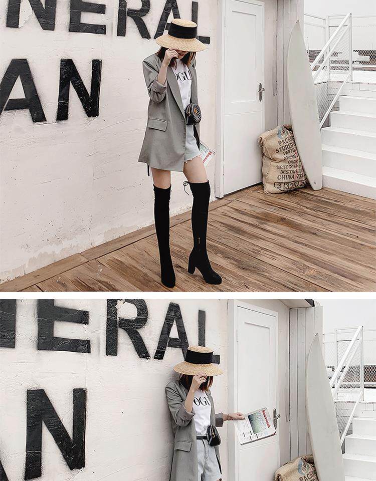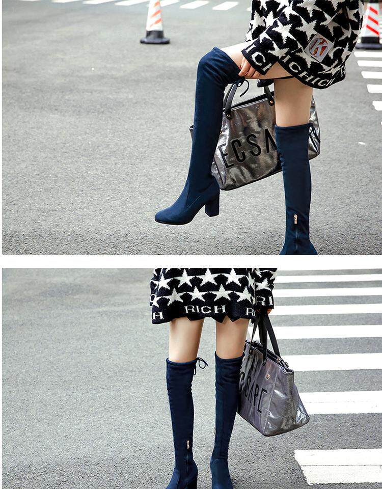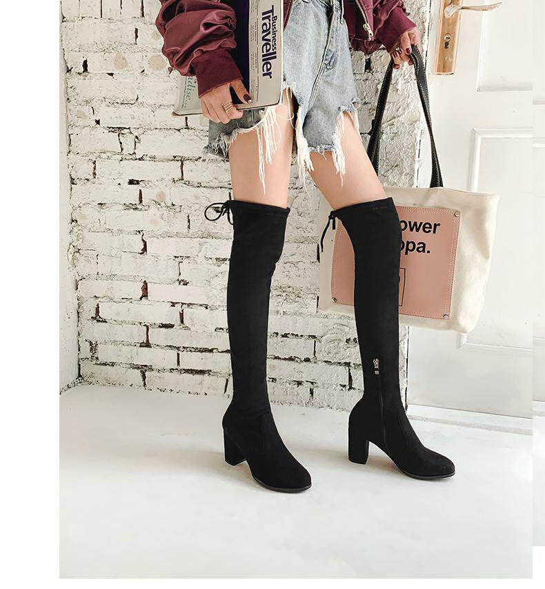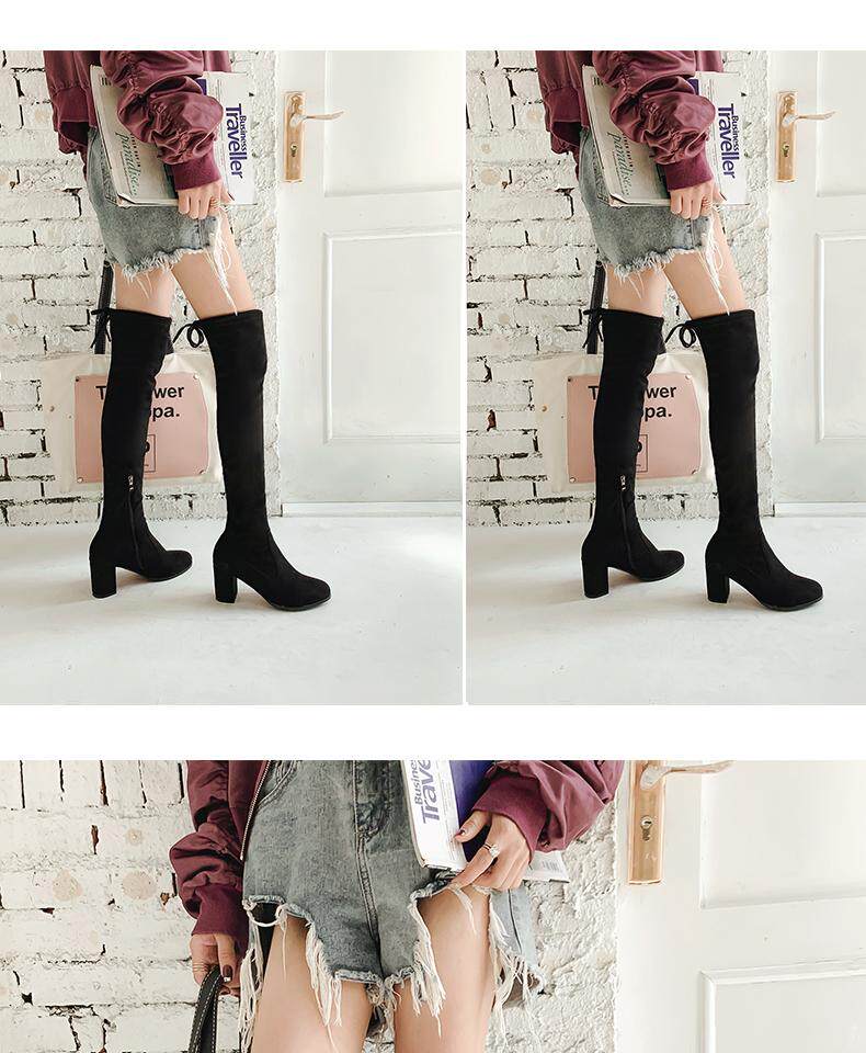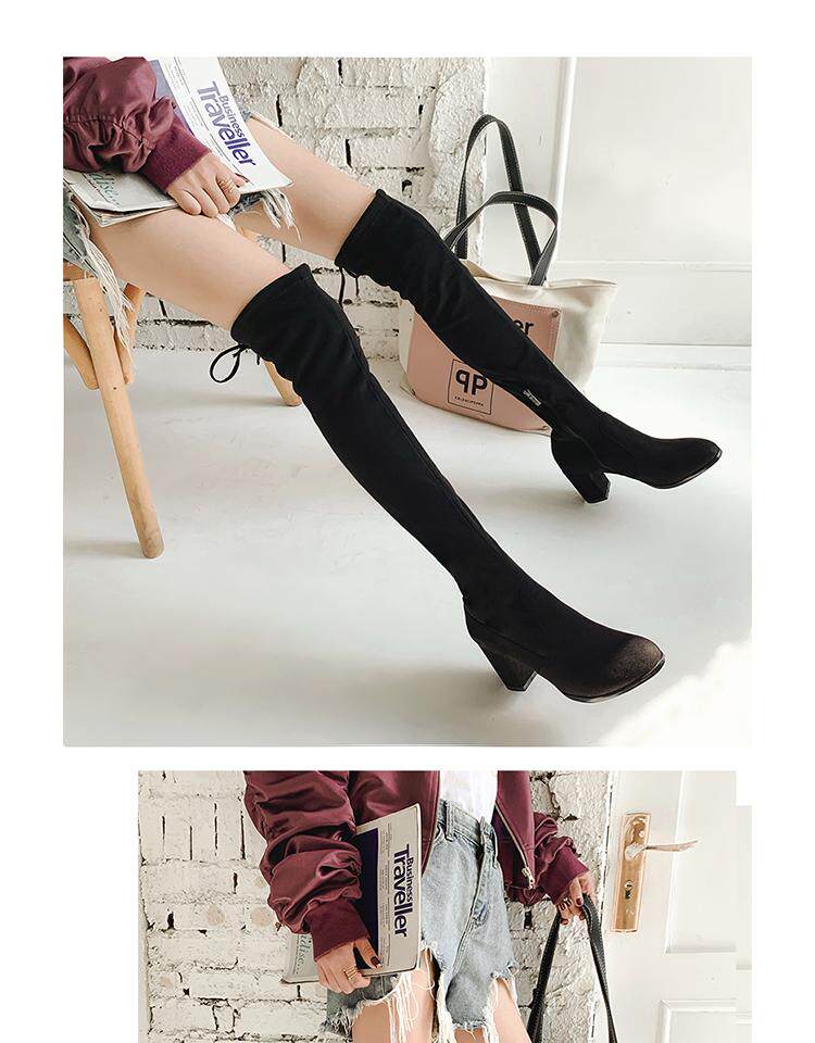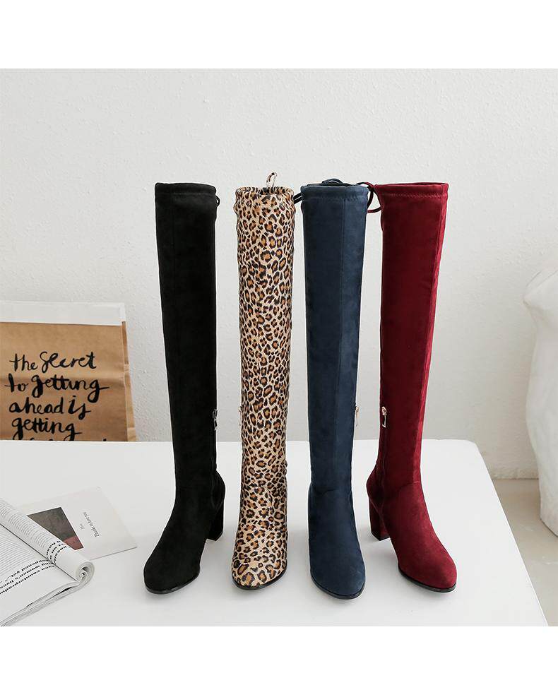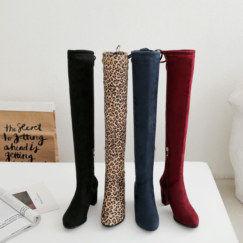 Осенние бордовые эластичные высокие сапоги с молнией, 2019
