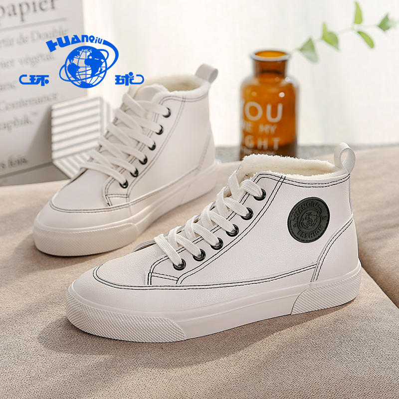 环球 Зимняя универсальная утепленная белая обувь для отдыха, удерживающие тепло туфли, кроссовки, 2020