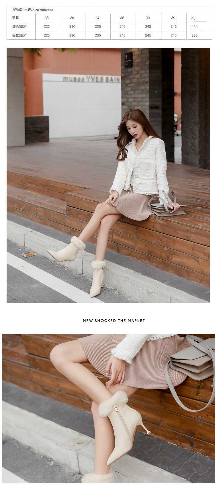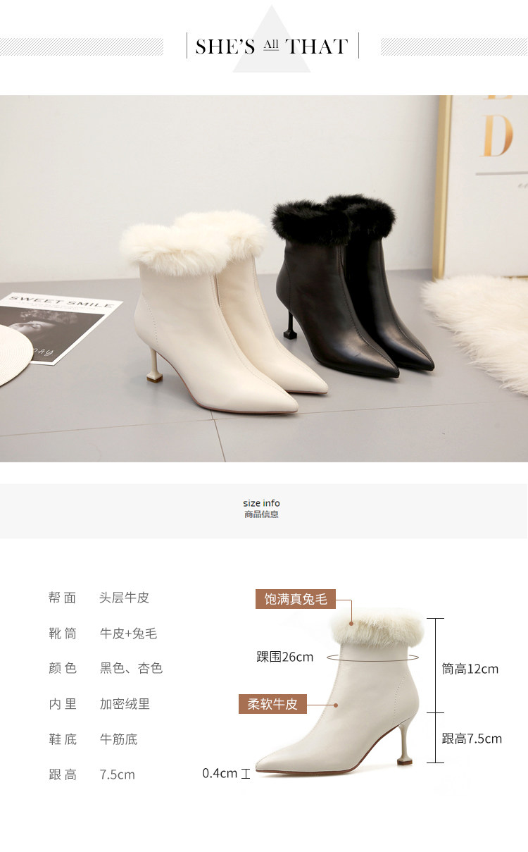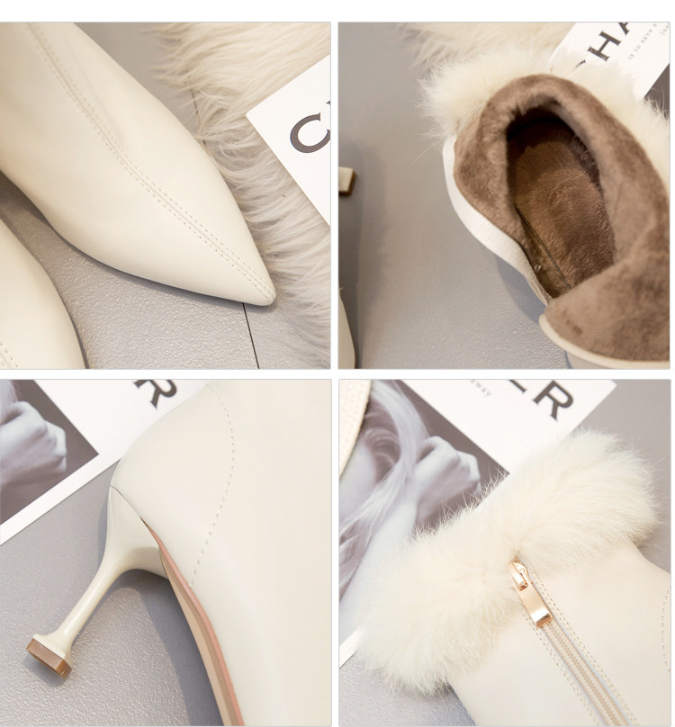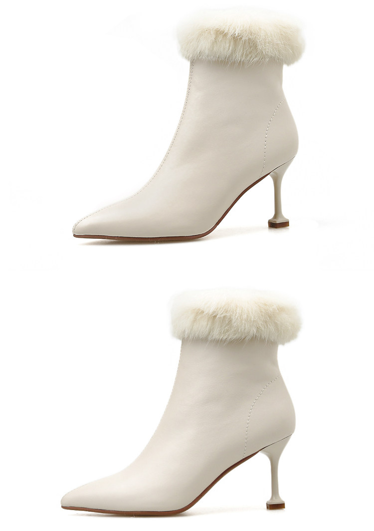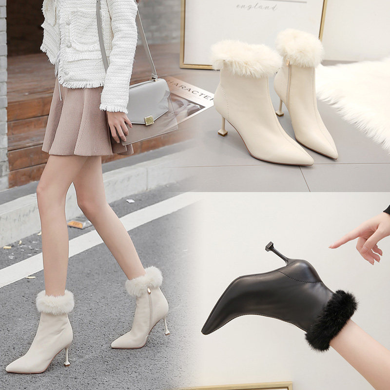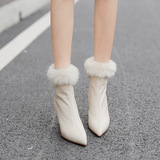 Бежевые короткие сапоги с заостренным носом, утепленная обувь на высоком каблуке, белые свадебные туфли