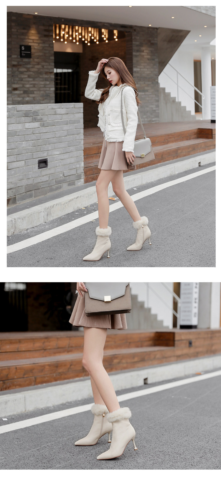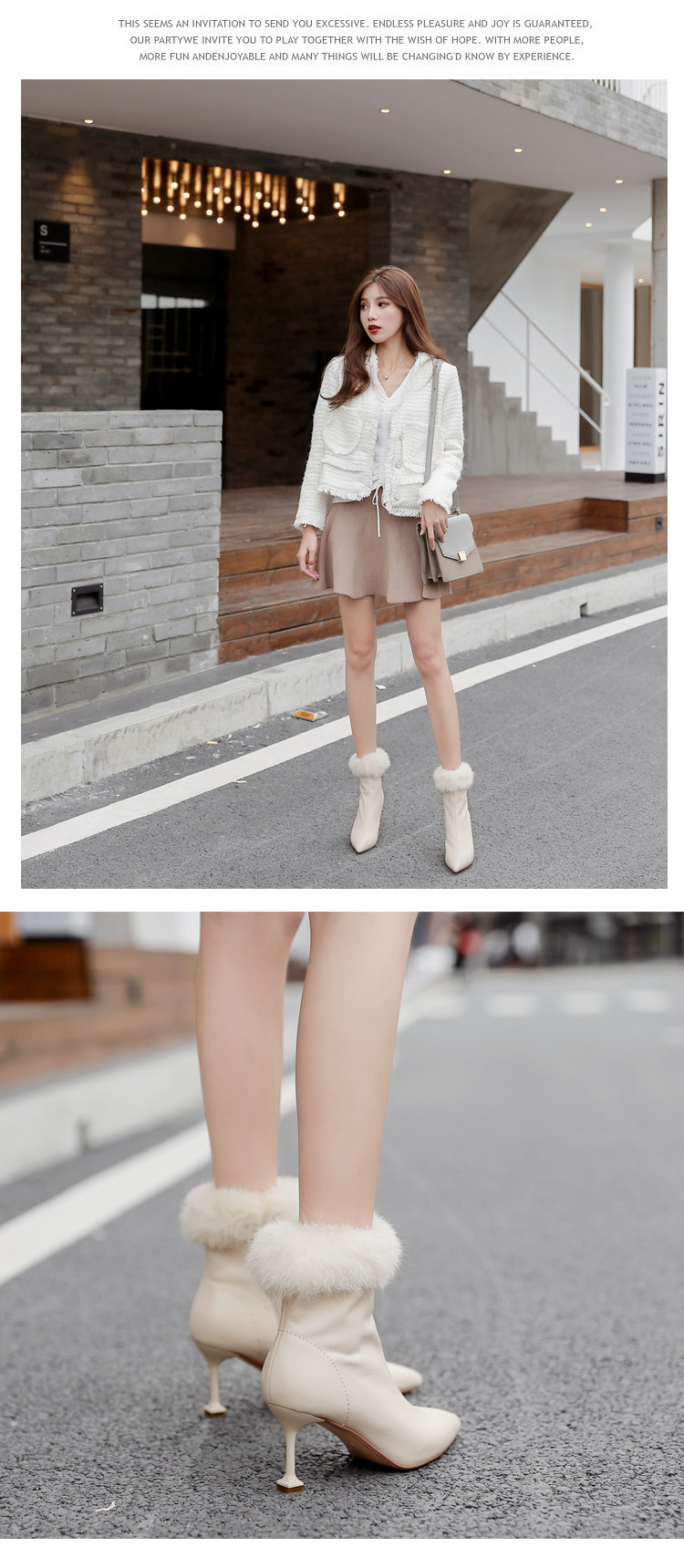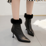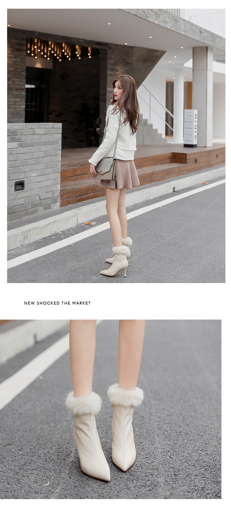 Бежевые короткие сапоги с заостренным носом, утепленная обувь на высоком каблуке, белые свадебные туфли