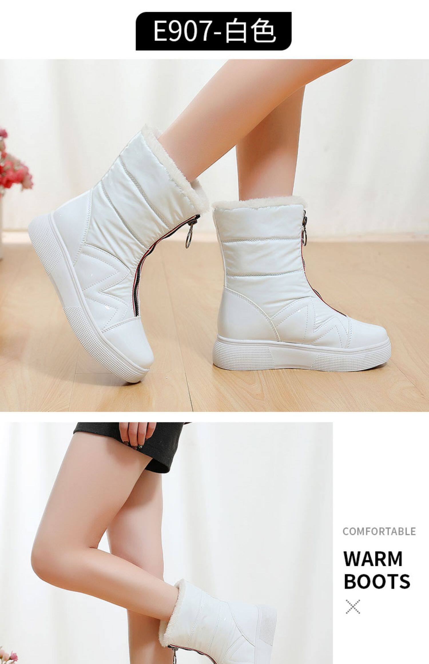 Зимние сапоги, флисовая белая обувь, ботинки, коллекция 2022, средней длины