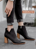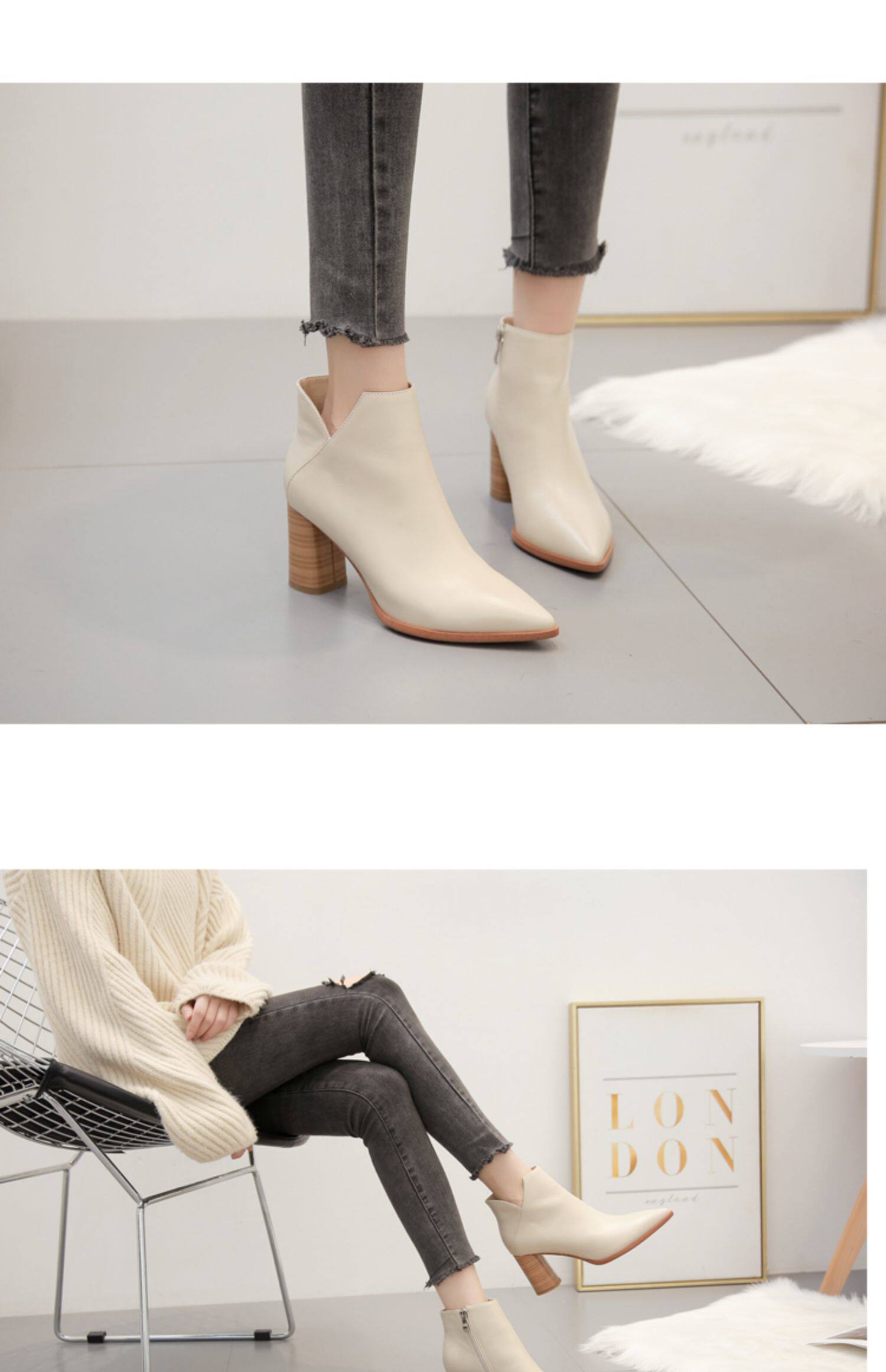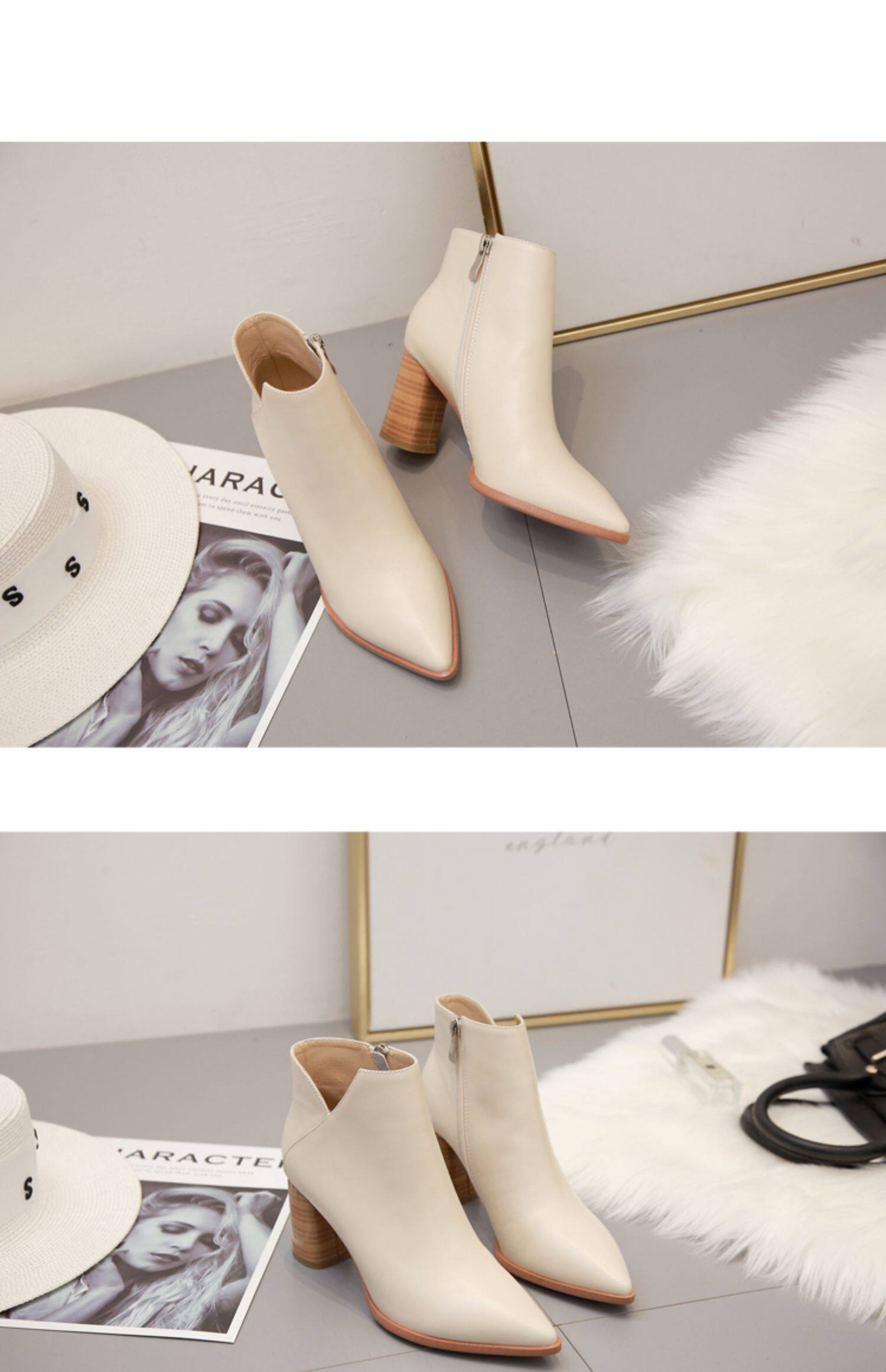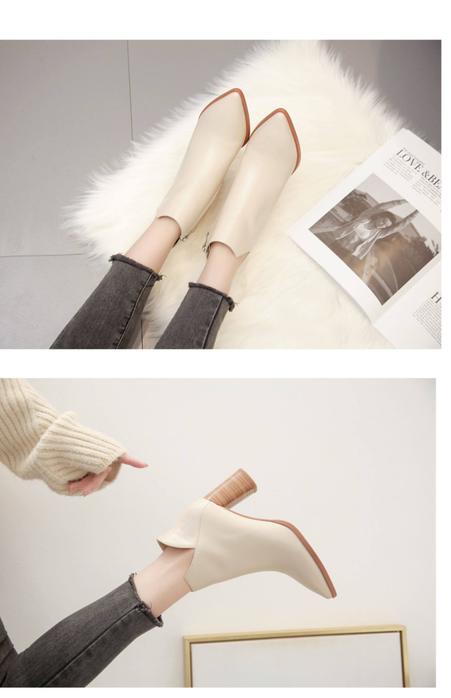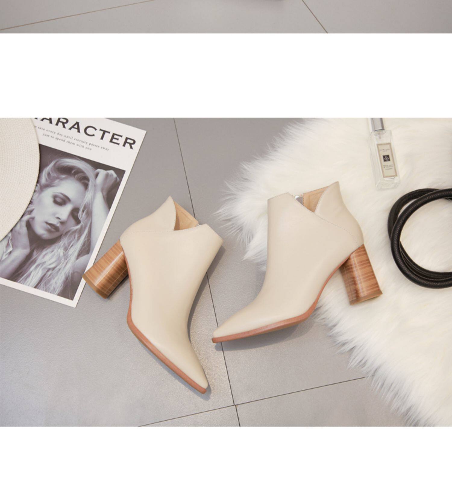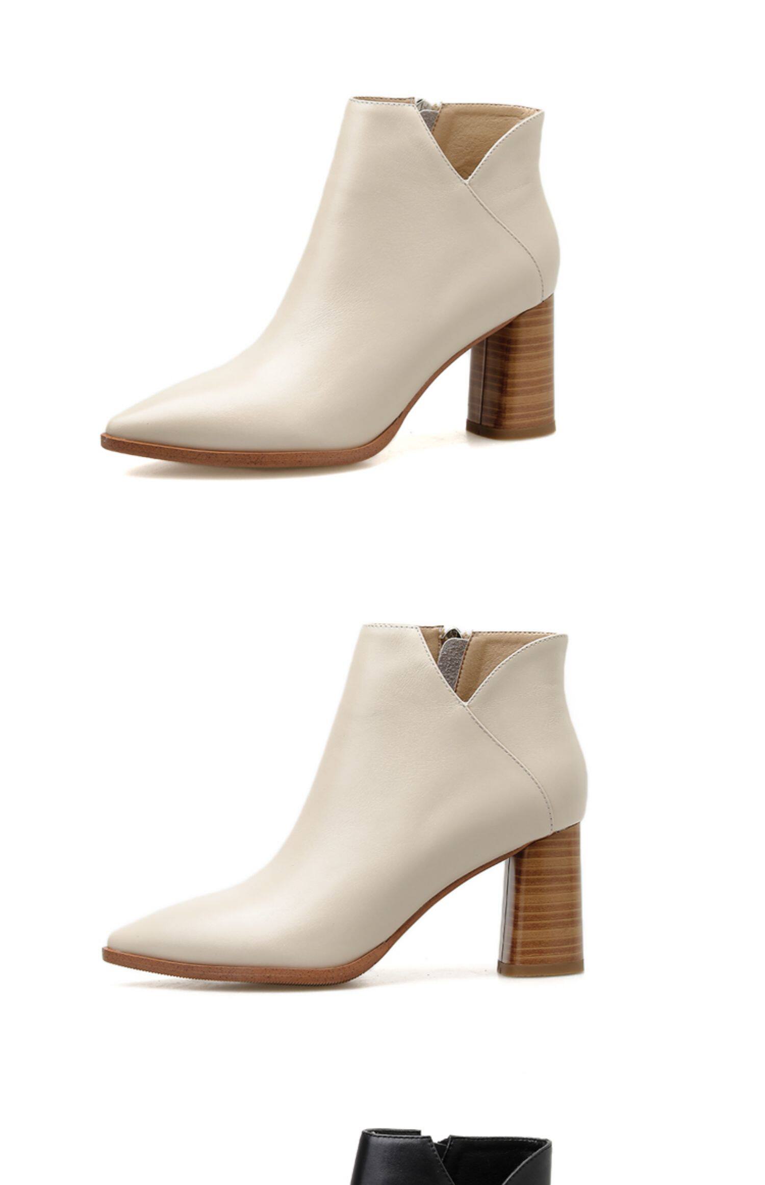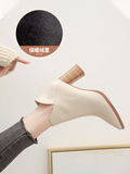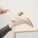 Martens, бежевые демисезонные флисовые абрикосовые короткие сапоги с заостренным носом на высоком каблуке, коллекция 2021, из натуральной кожи