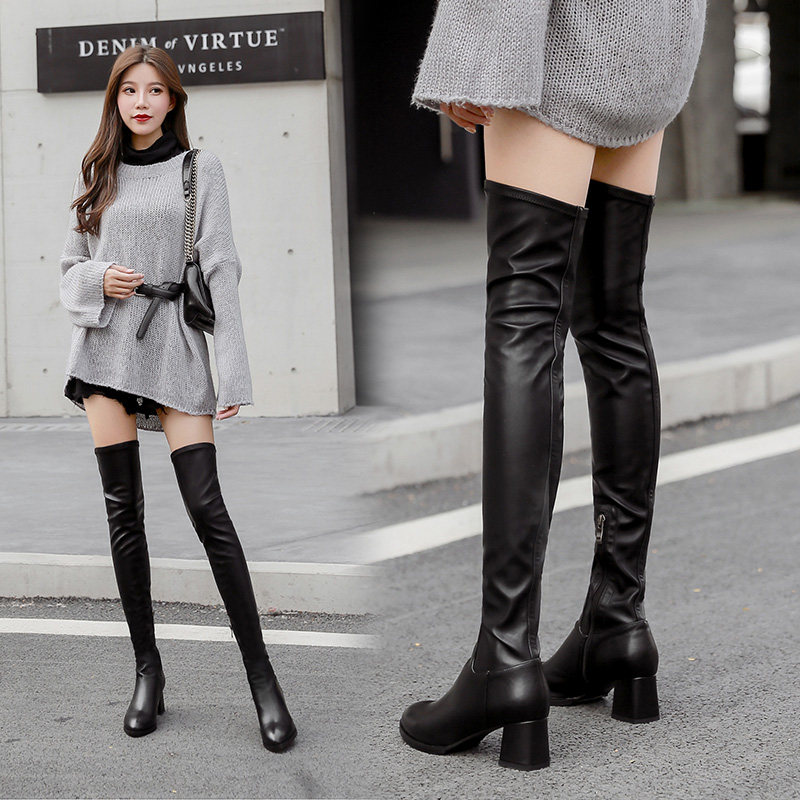 Высокие сапоги, зимняя сверхдлинная флисовая эластичная обувь, 2023
