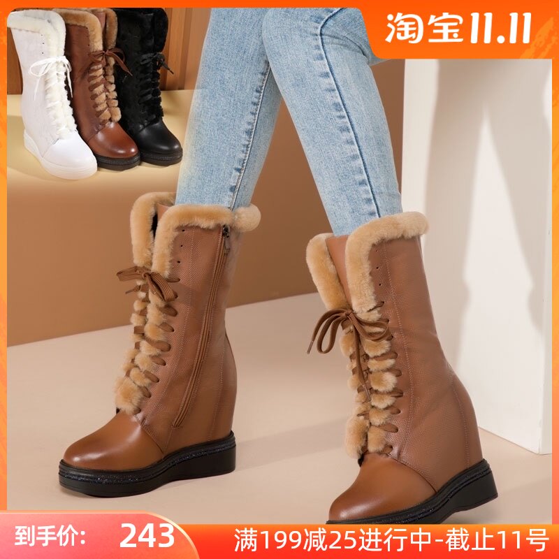 Зимние высокие универсальные короткие сапоги для отдыха, ботинки, 10см, из натуральной кожи, по фигуре