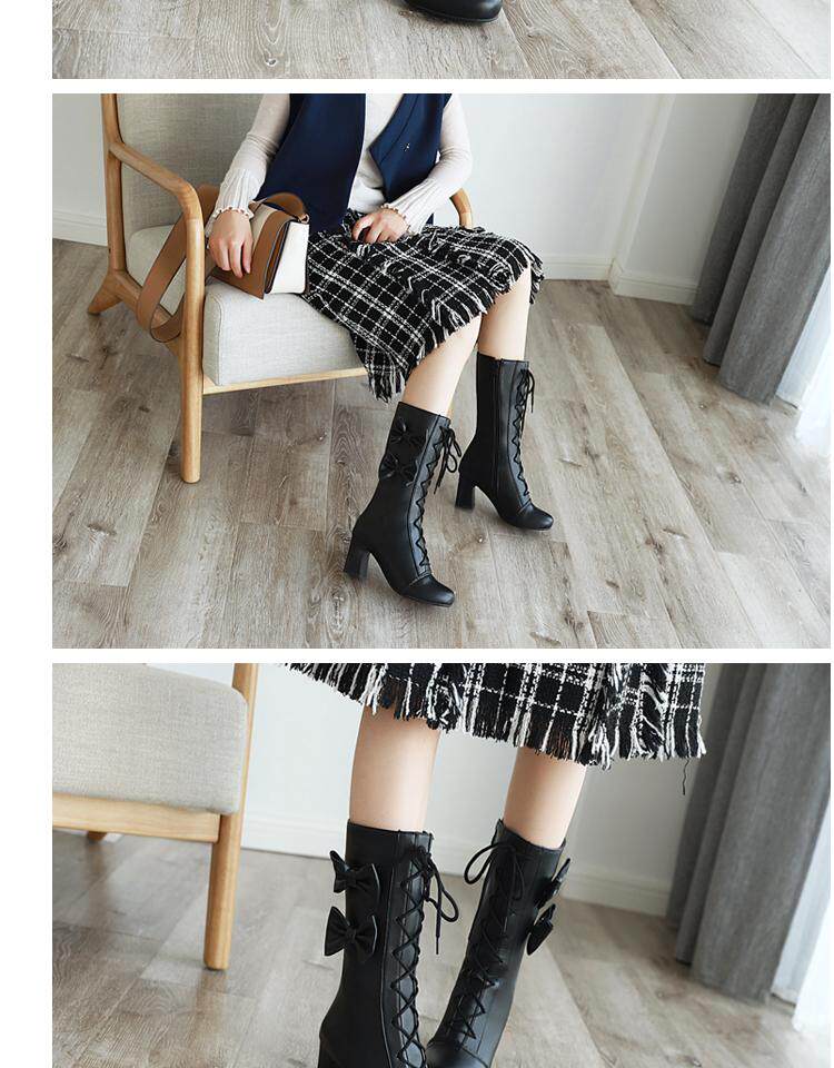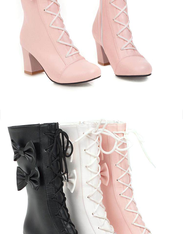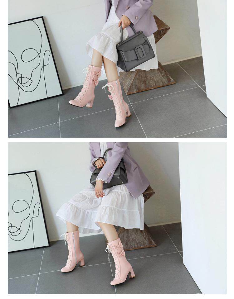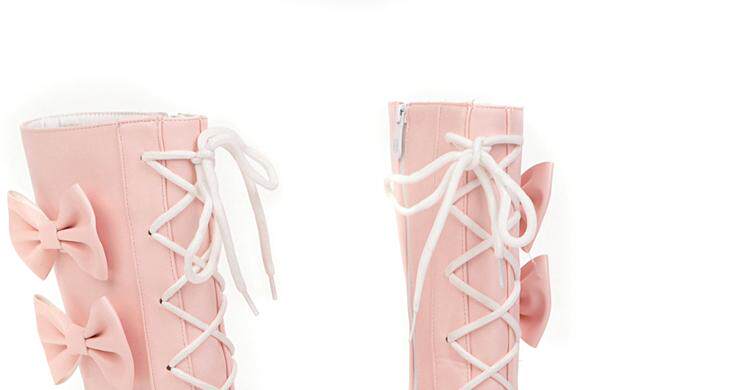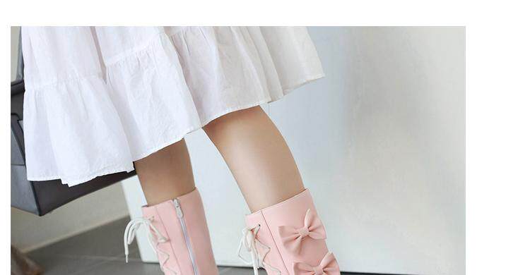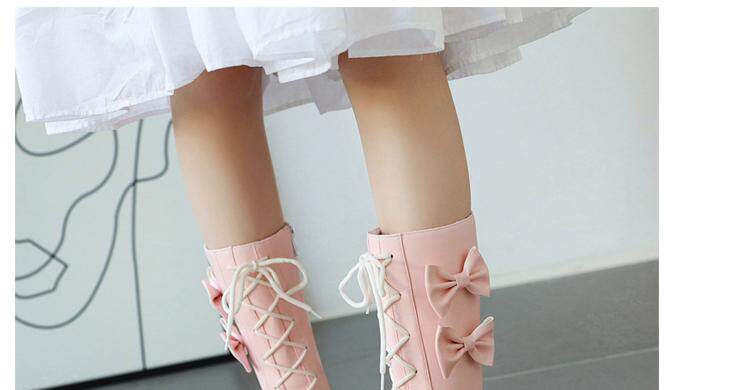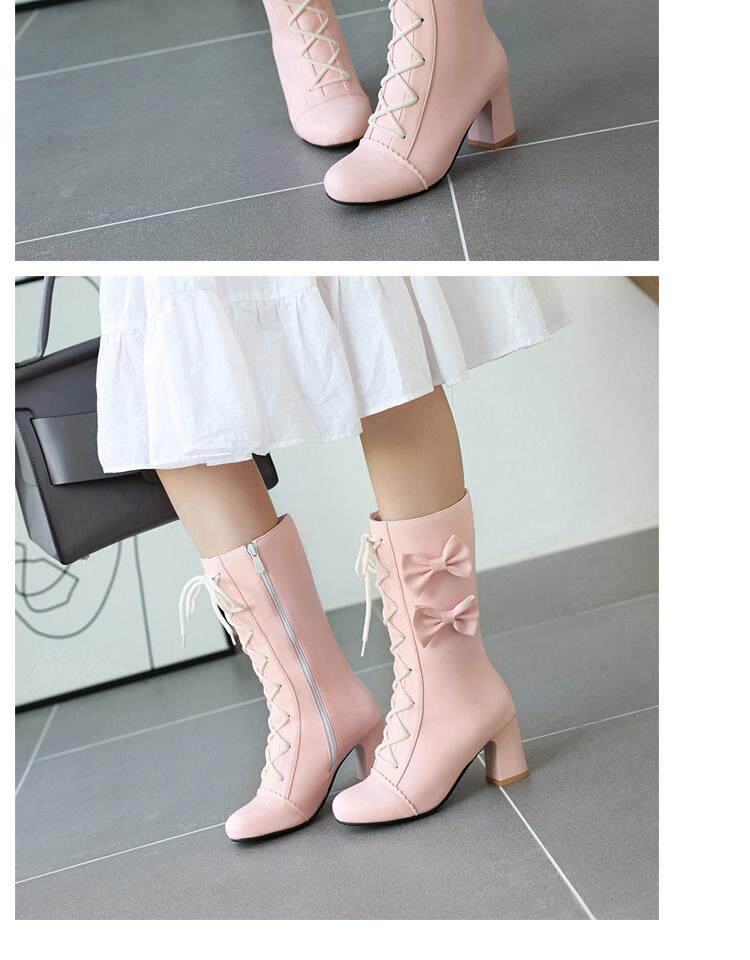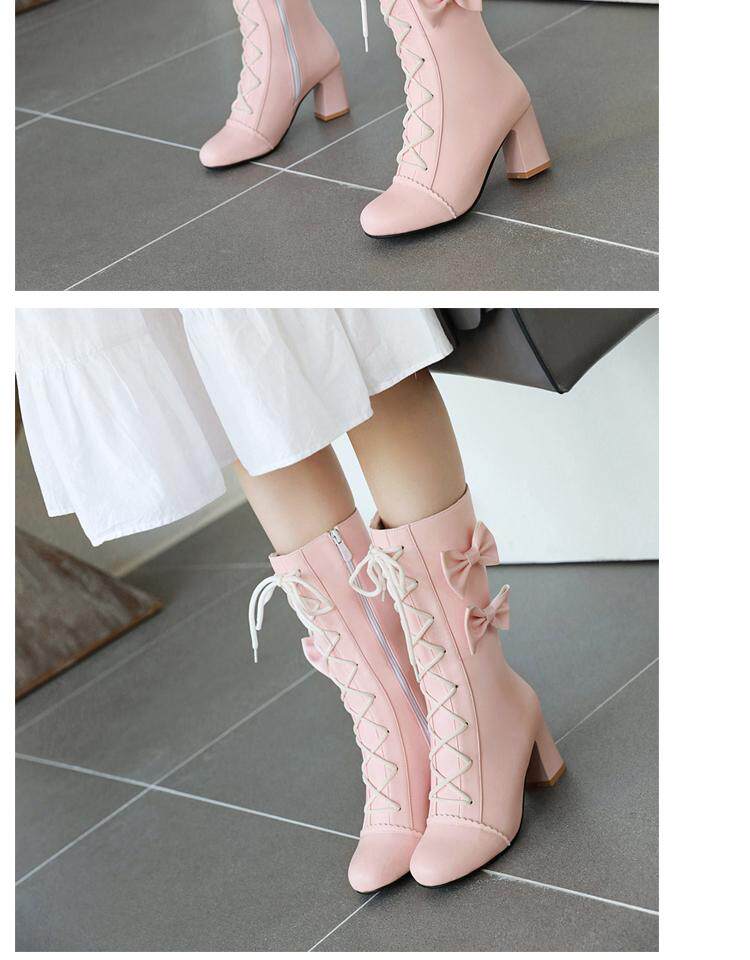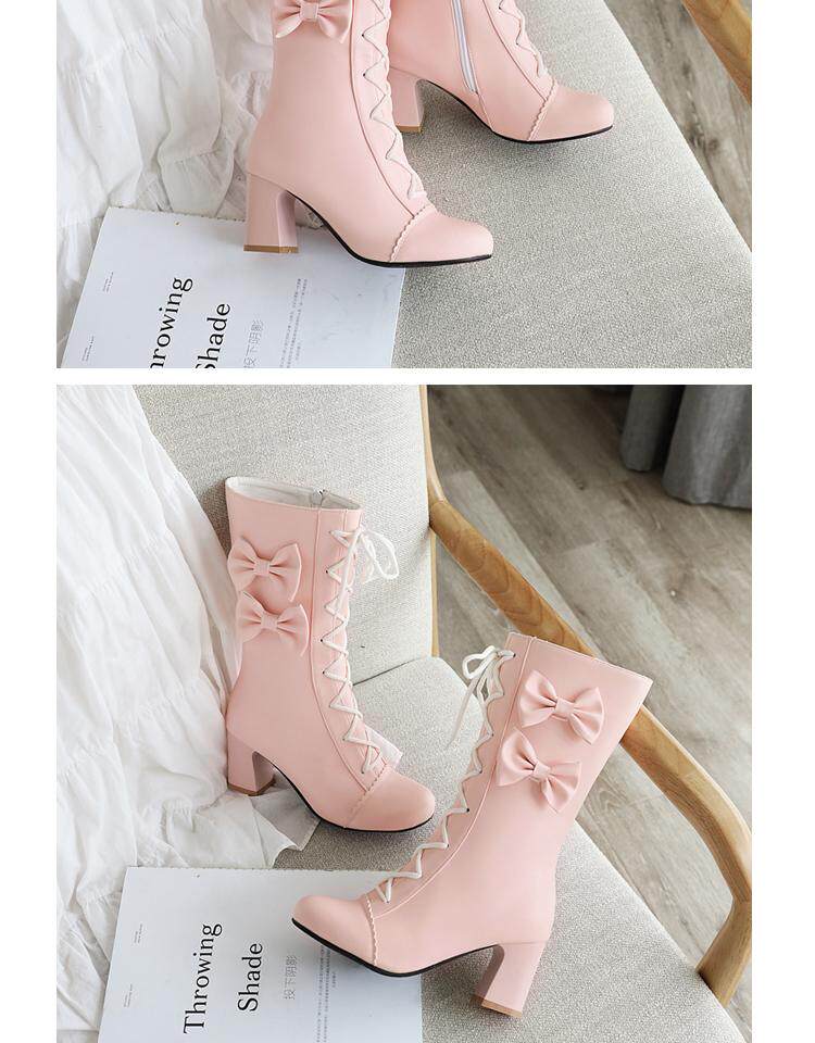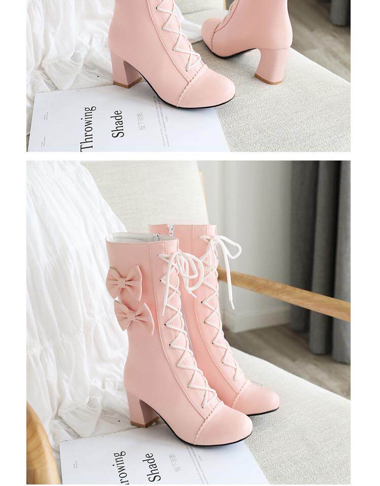 Короткие сапоги, милые ботинки, кружевное розовое платье с бантиком, увеличенная толщина