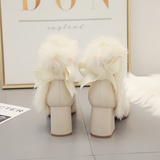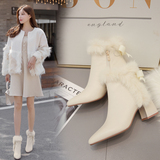 Бежевые демисезонные утепленные короткие сапоги, зимняя обувь на высоком каблуке, ботинки, из натуральной кожи