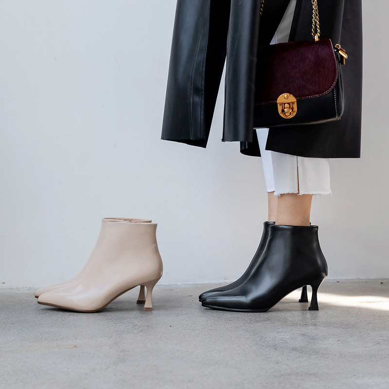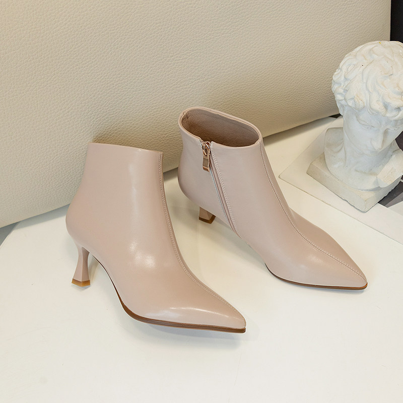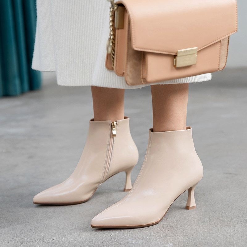 Абрикосовые короткие сапоги, утепленные универсальные ботильоны, 2020