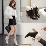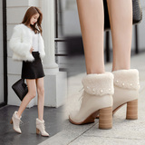 Martens, светлые зимние флисовые удерживающие тепло абрикосовые короткие сапоги с заостренным носом на высоком каблуке