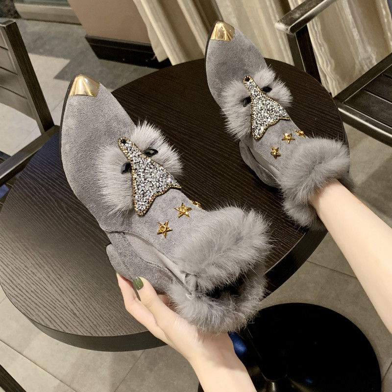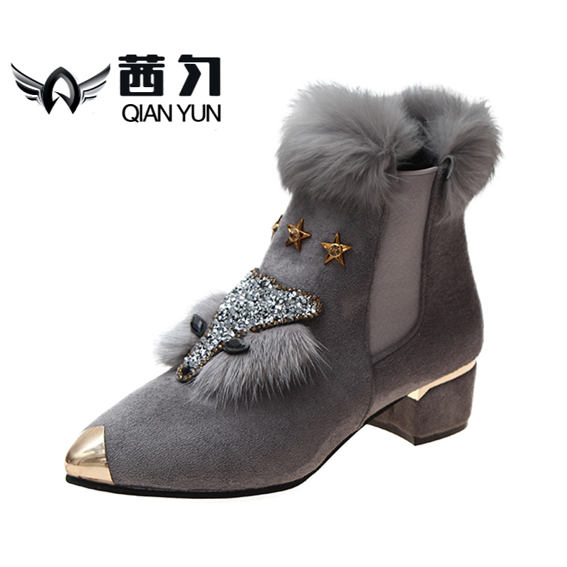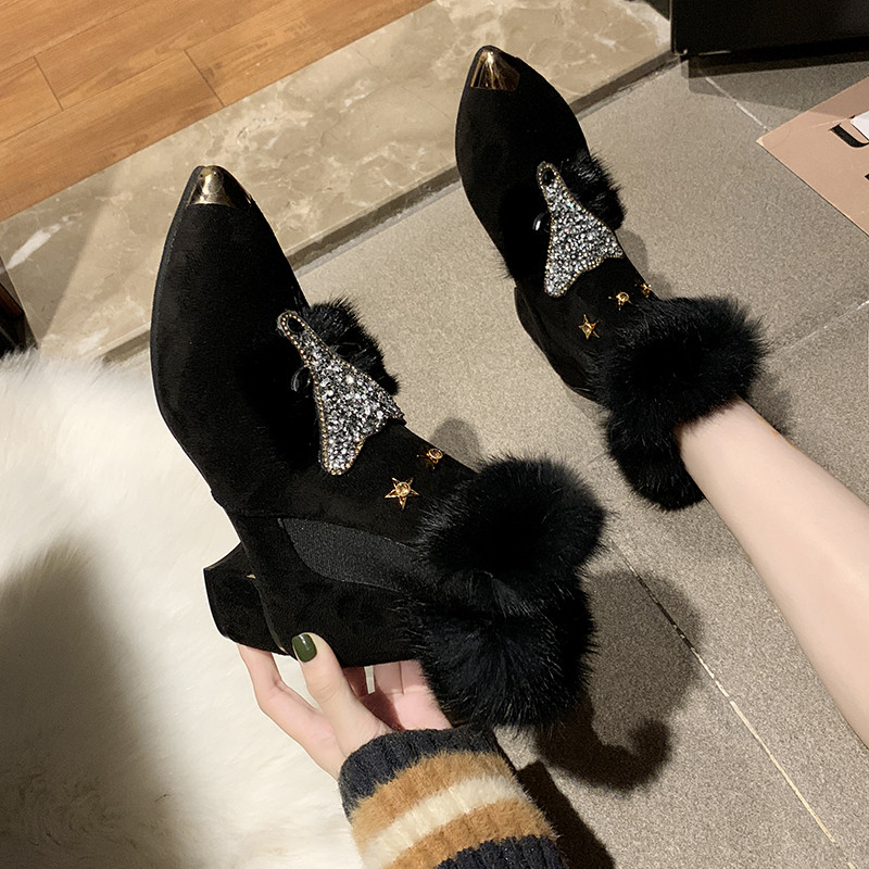 Утепленная обувь, туфли на высоком каблуке с заостренным носом, короткие сапоги, европейский стиль