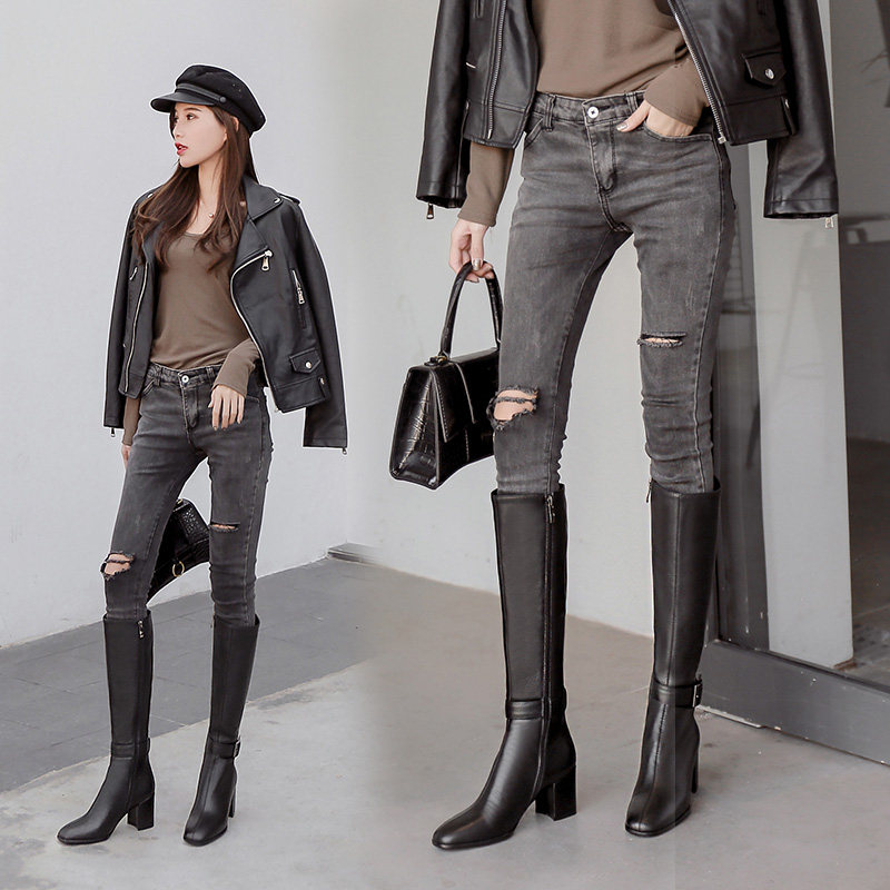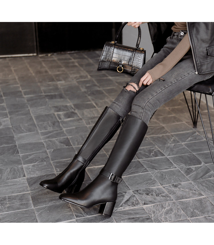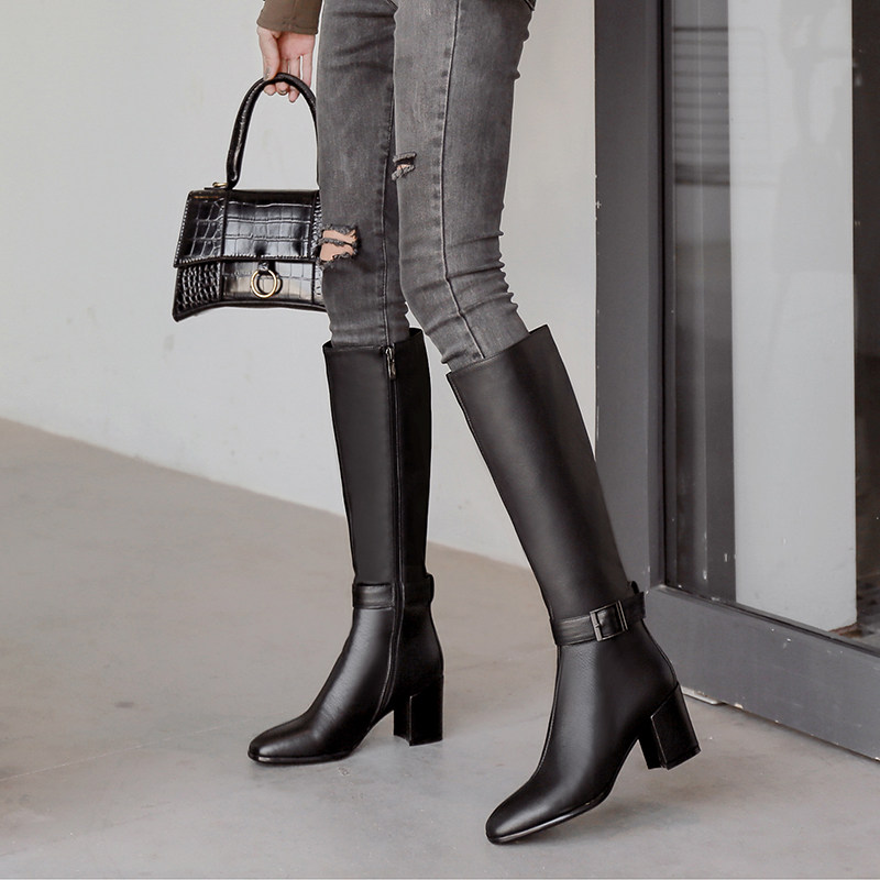 Утепленные высокие сапоги, коллекция 2021, из натуральной кожи, подходит для подростков
