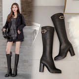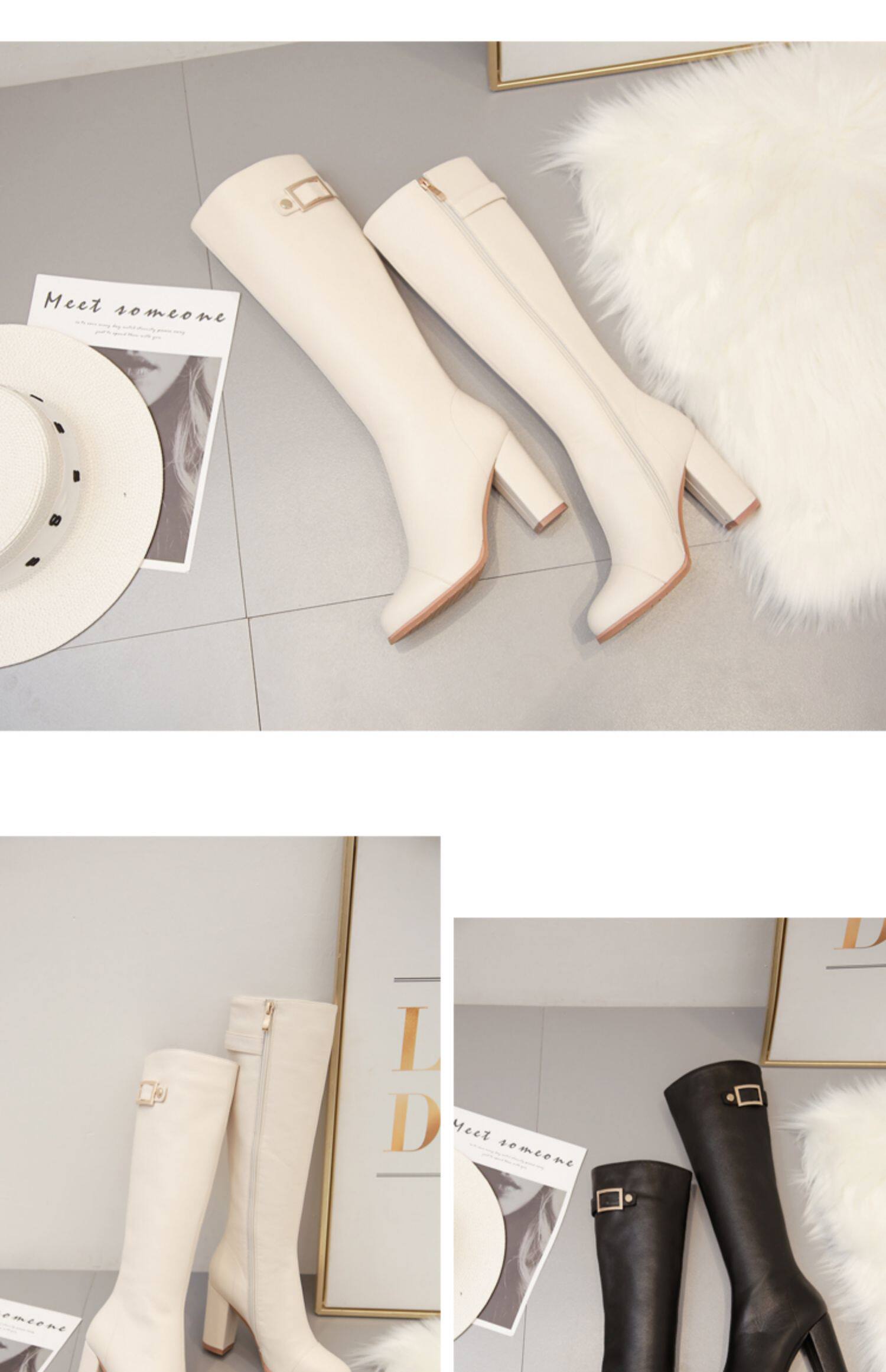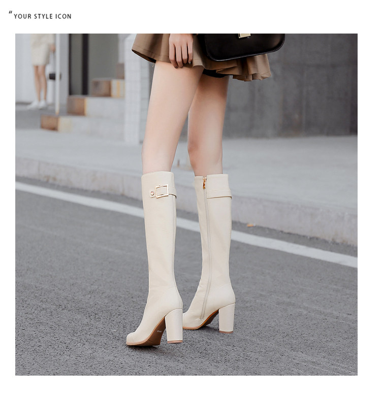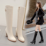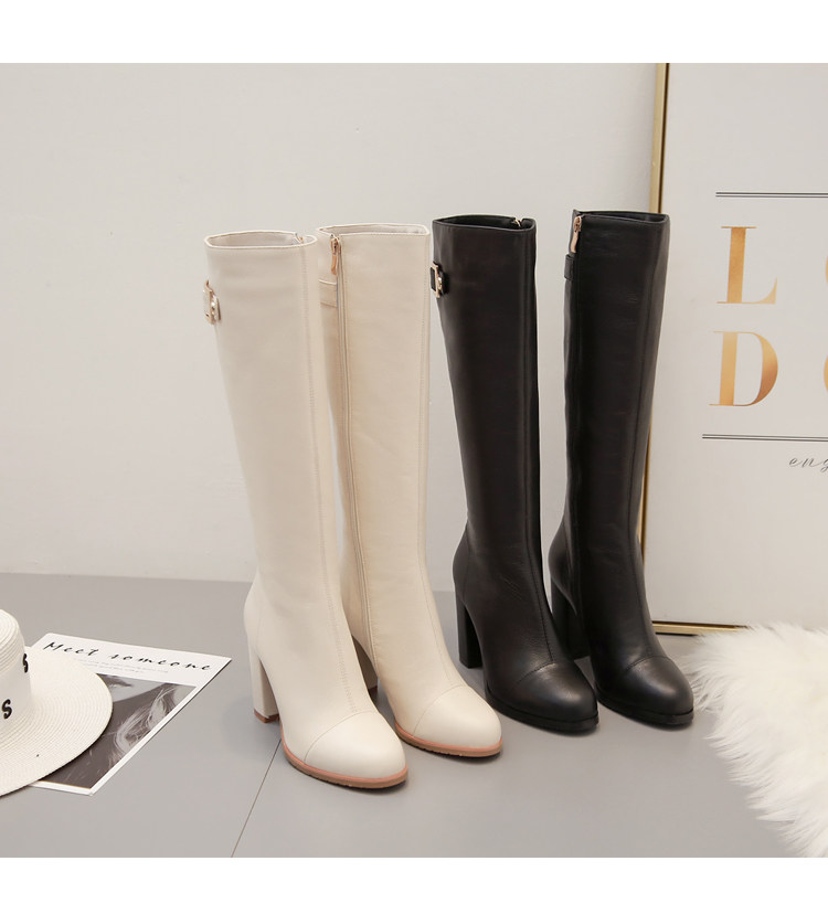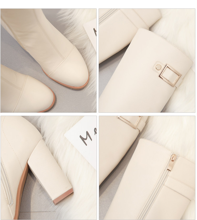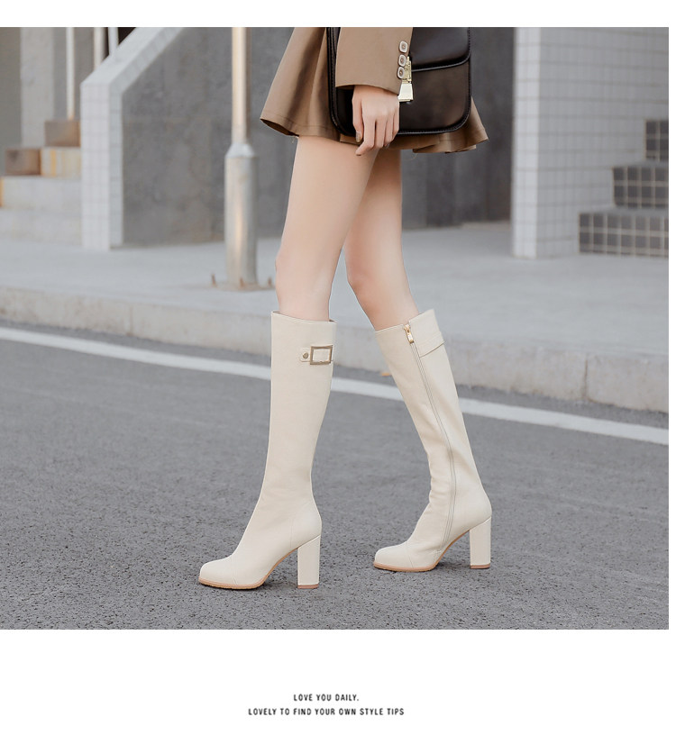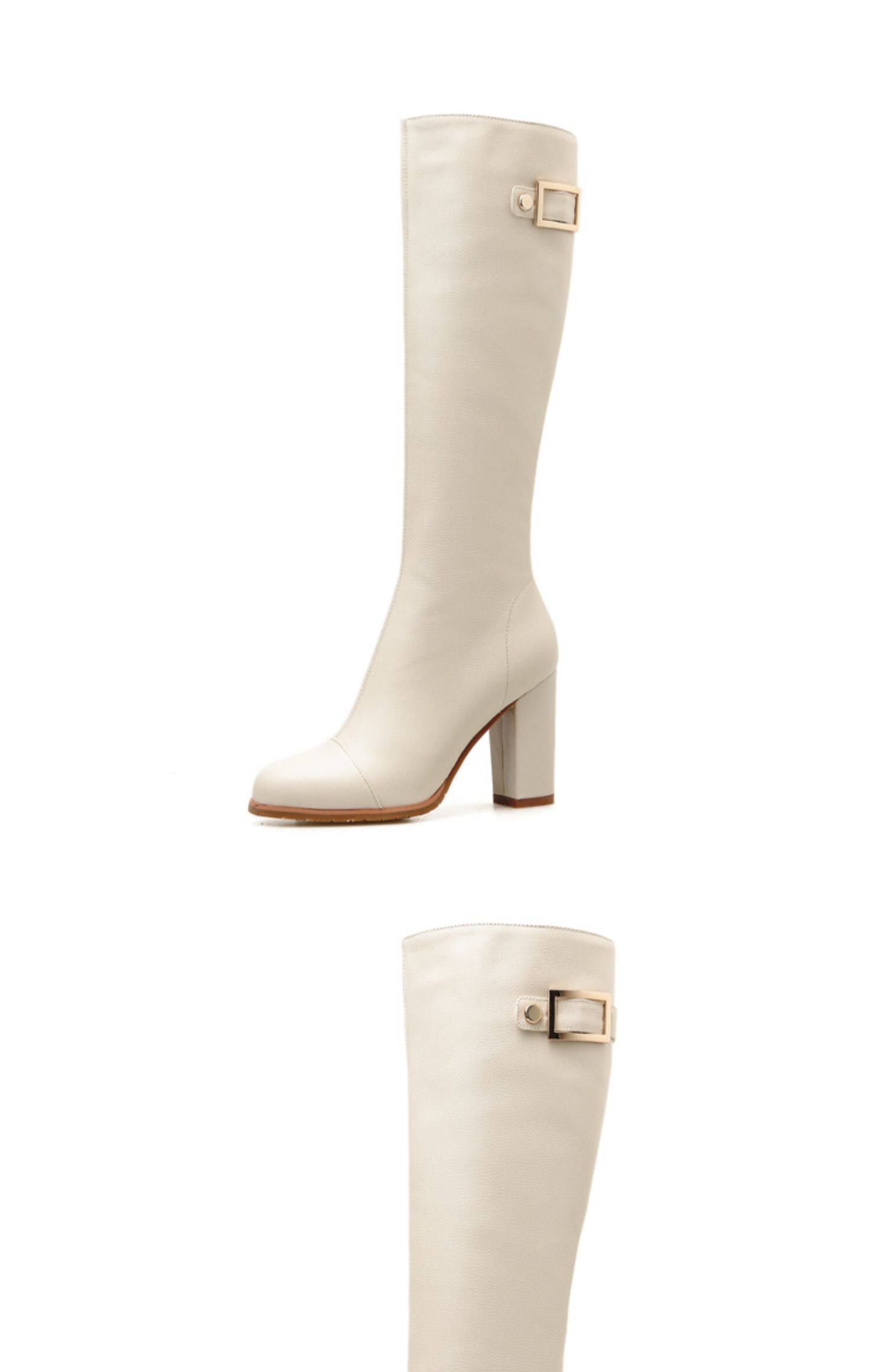 Бежевые утепленные удерживающие тепло универсальные высокие сапоги, из натуральной кожи