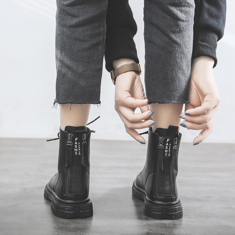 Martens, демисезонные напяточники с молнией, универсальные флисовые короткие сапоги на платформе, европейский стиль, 2019, популярно в интернете