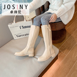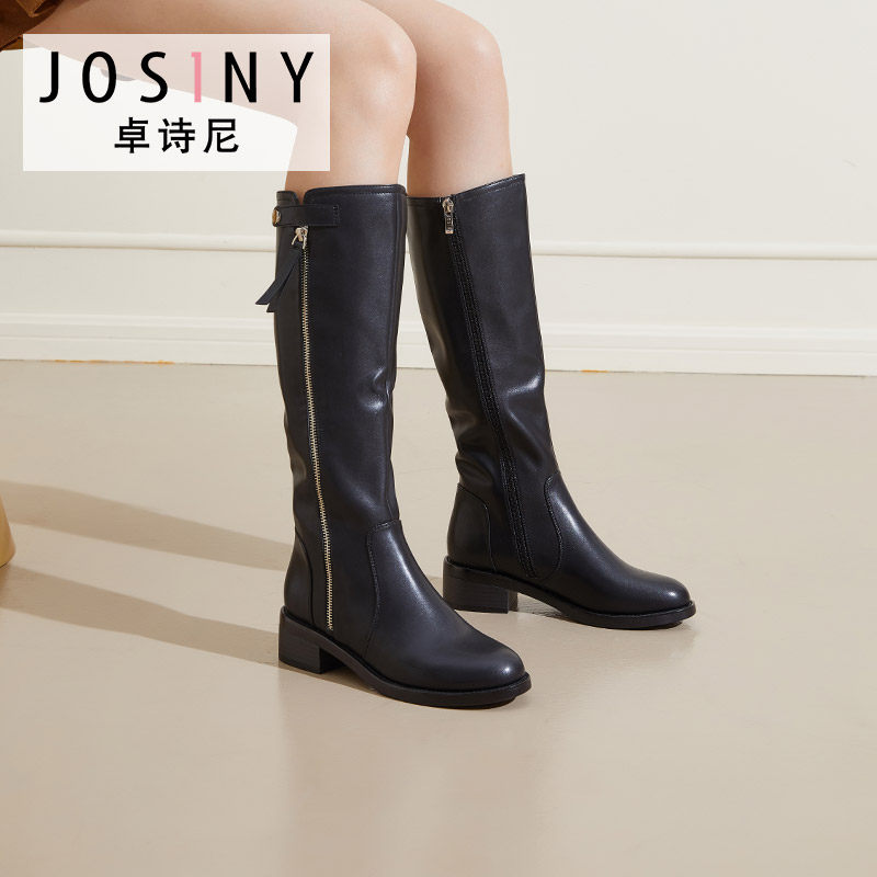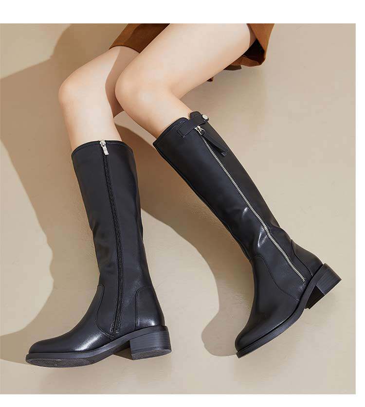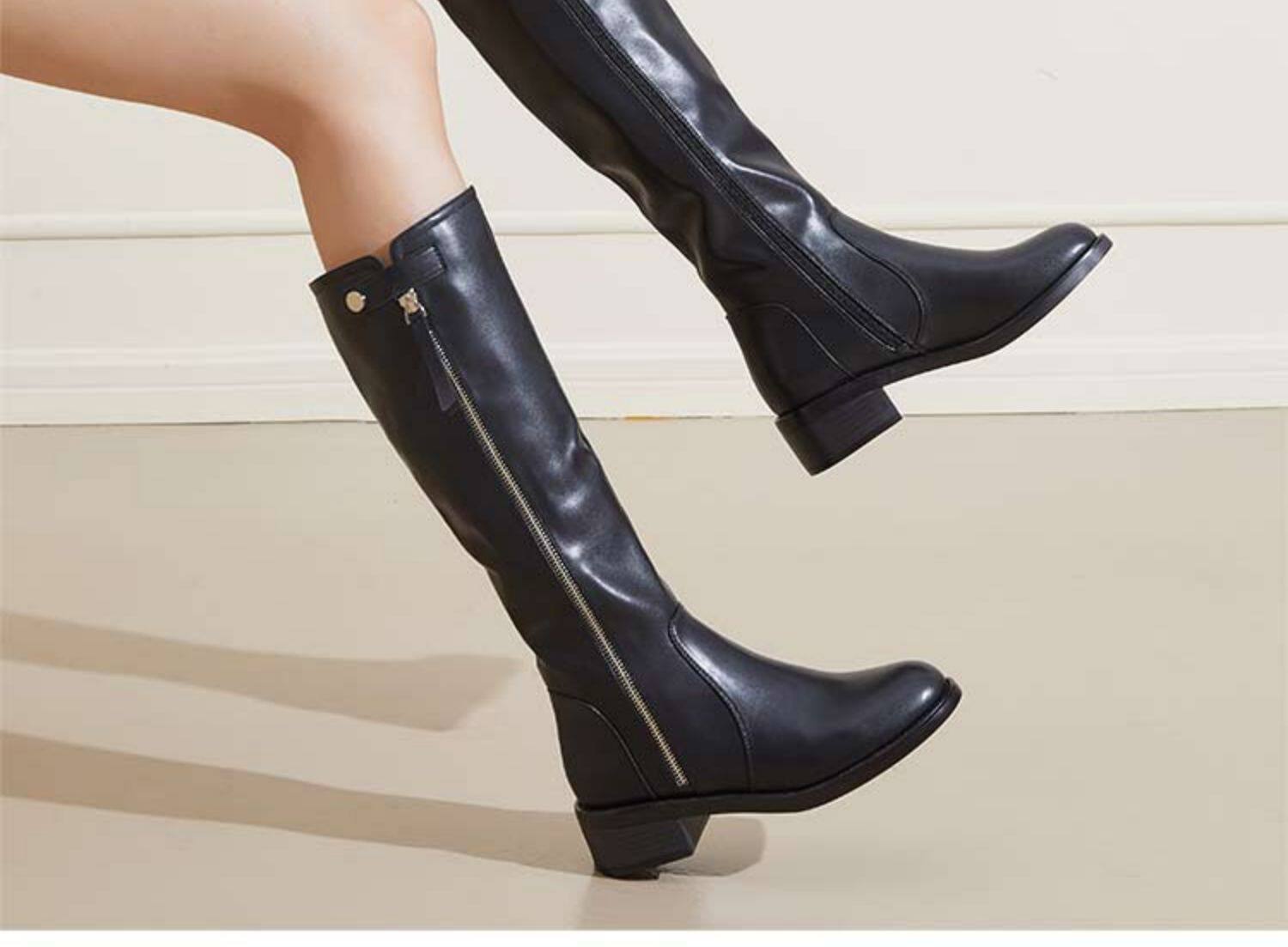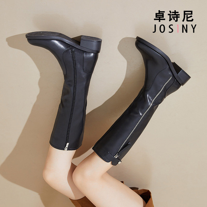 Зимние высокие сапоги в английском стиле, флисовые ботинки с молнией, 2023, по фигуре, в британском стиле, средней длины