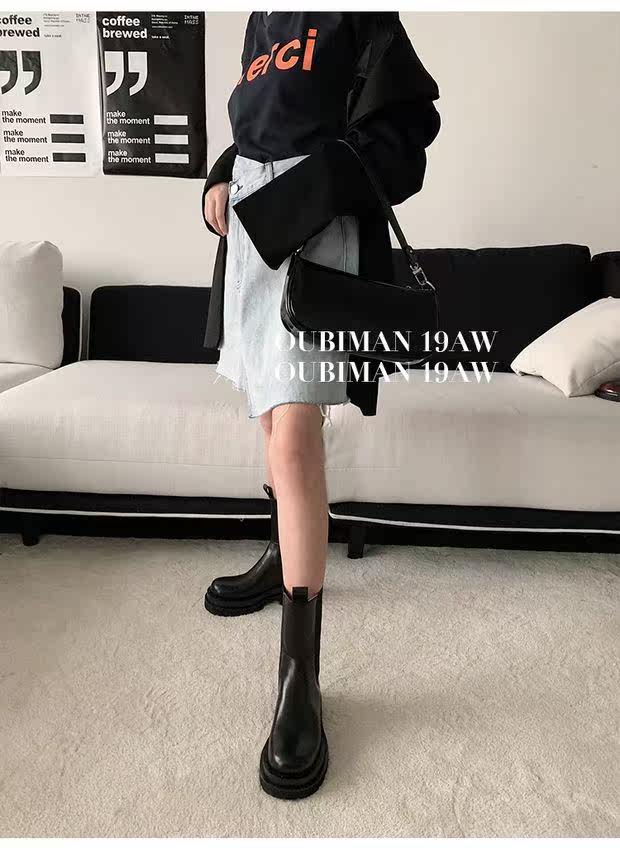 Martens, демисезонные челси на платформе, высокие короткие сапоги, средней длины
