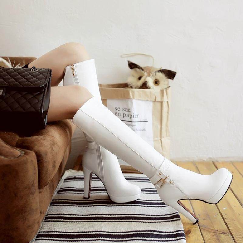 Модные высокие сапоги, демисезонные белые ботинки, европейский стиль